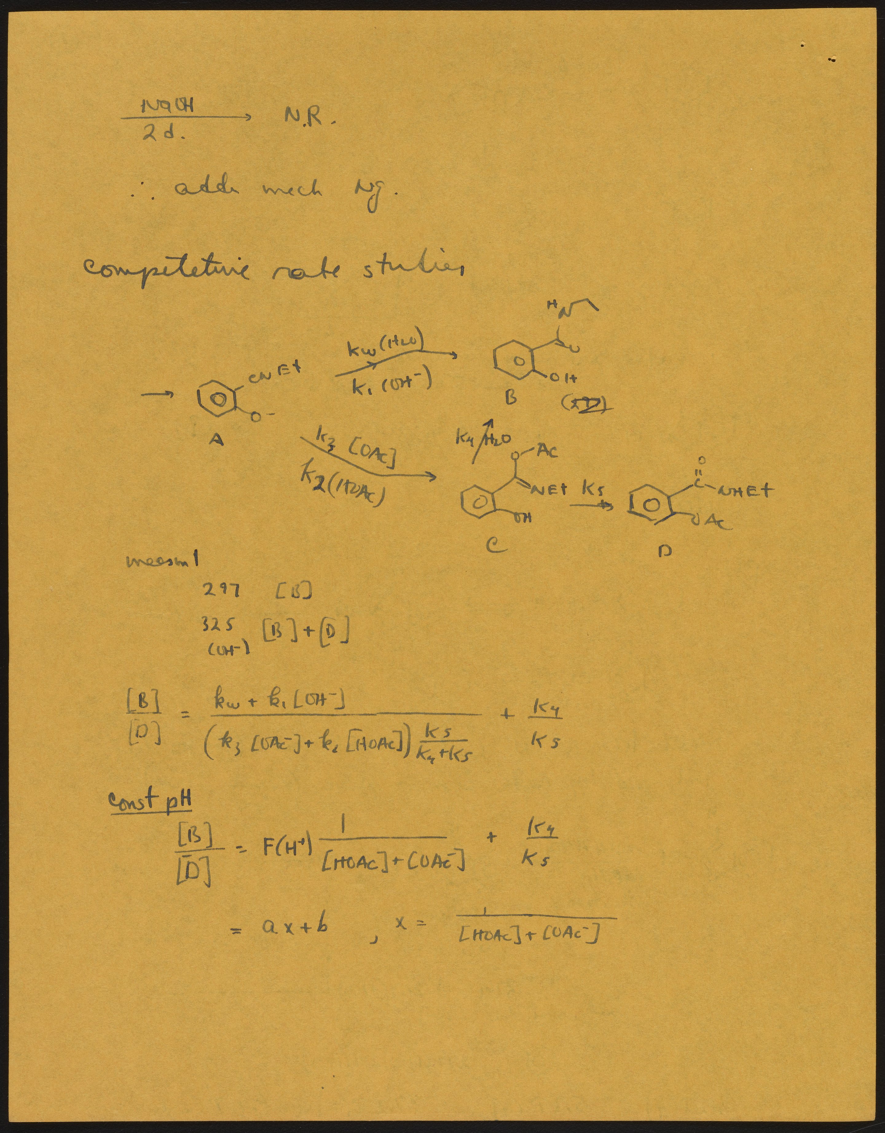 Kohler, Robert E. “R. B. (Robert Burns) Woodward Seminar Entitled ‘N-Et Benzisoxazolium Salts.’” Notes from R. B. (Robert Burns) Woodward's Seminars, circa 1959–1966. Folder 2. Science History Institute. Philadelphia. https://digital.sciencehistory.org/works/h989r4102.