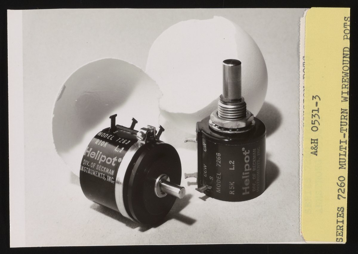 Armstrong & Hess. “Helipot Potentiometers with Eggshells,” 1960–1969. Beckman Historical Collection, Box 86. Science History Institute. Philadelphia. https://digital.sciencehistory.org/works/hd76s0103.
