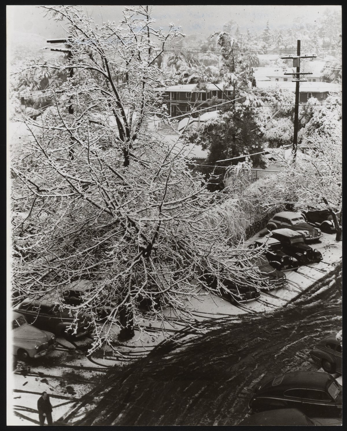 Rohrer, Larry. “Northwest Parking Lot of National Technical Laboratories.” National Technical Laboratories in Winter, 1948. Beckman Historical Collection, Box 55, Folder 96. Science History Institute. Philadelphia. https://digital.sciencehistory.org/works/hd76s038s.