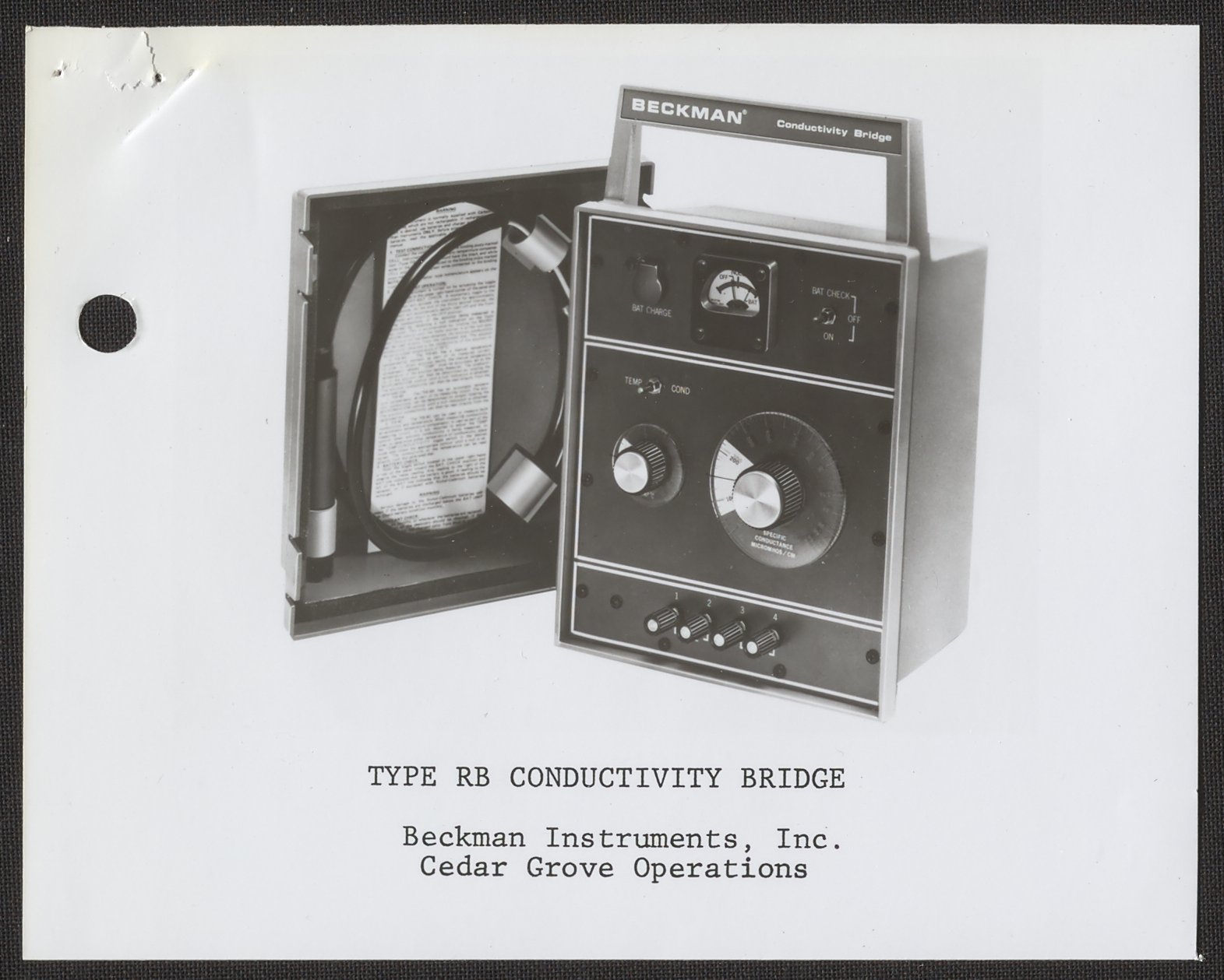 “Beckman Type RB Conductivity Bridge,” n.d. Beckman Historical Collection, Box 84. Science History Institute. Philadelphia. https://digital.sciencehistory.org/works/hd76s0499.