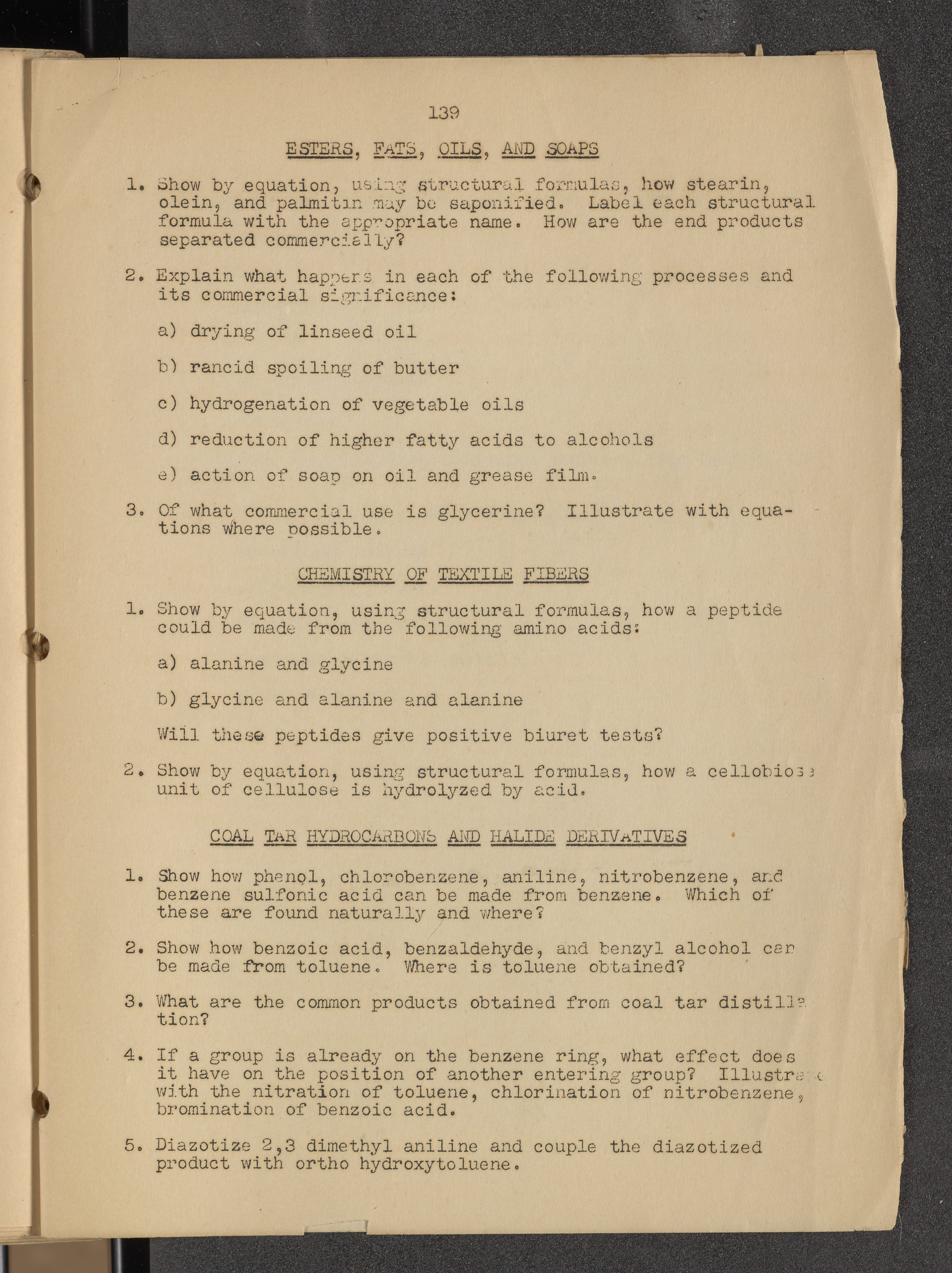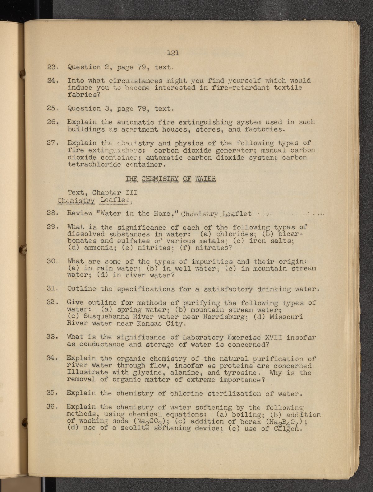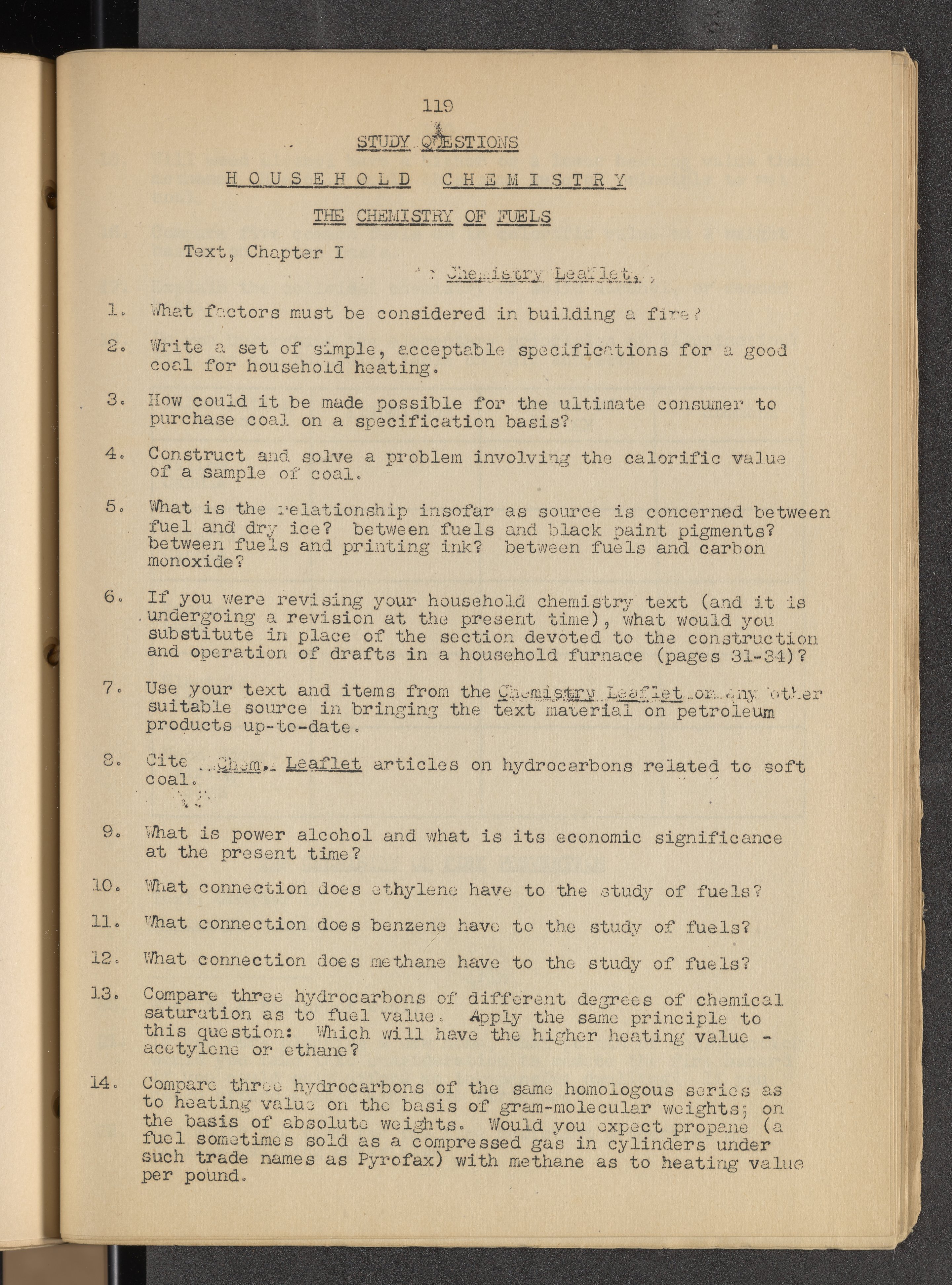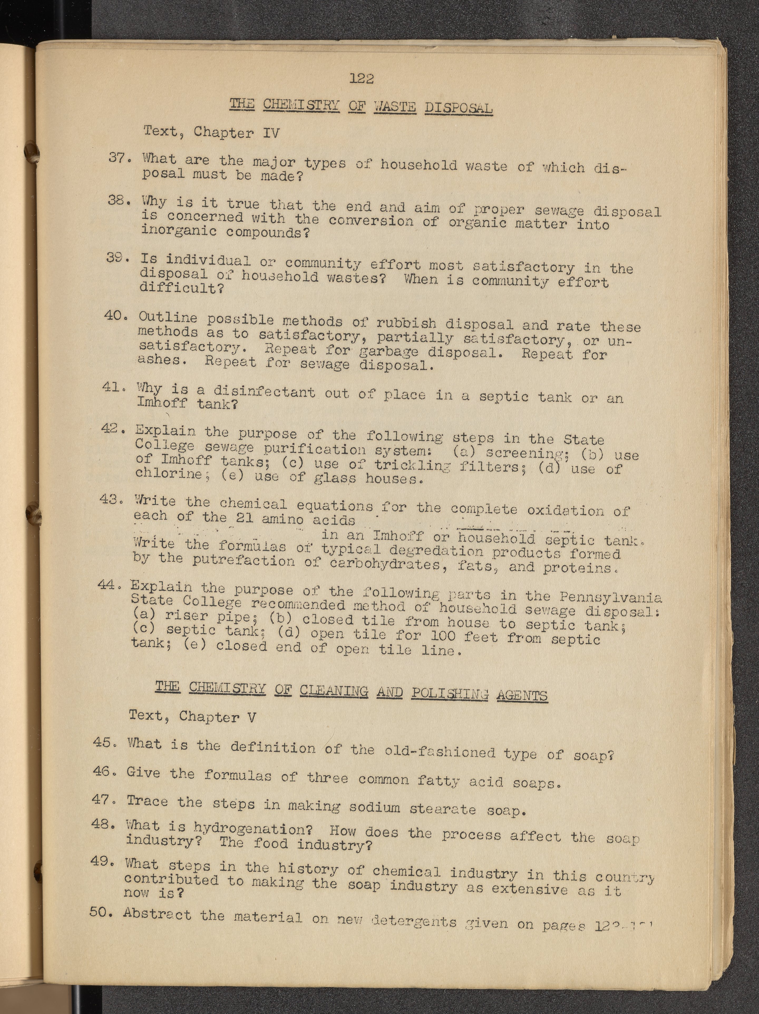 Study questions for Household and Organic Chemistry course at Pennsylvania State University