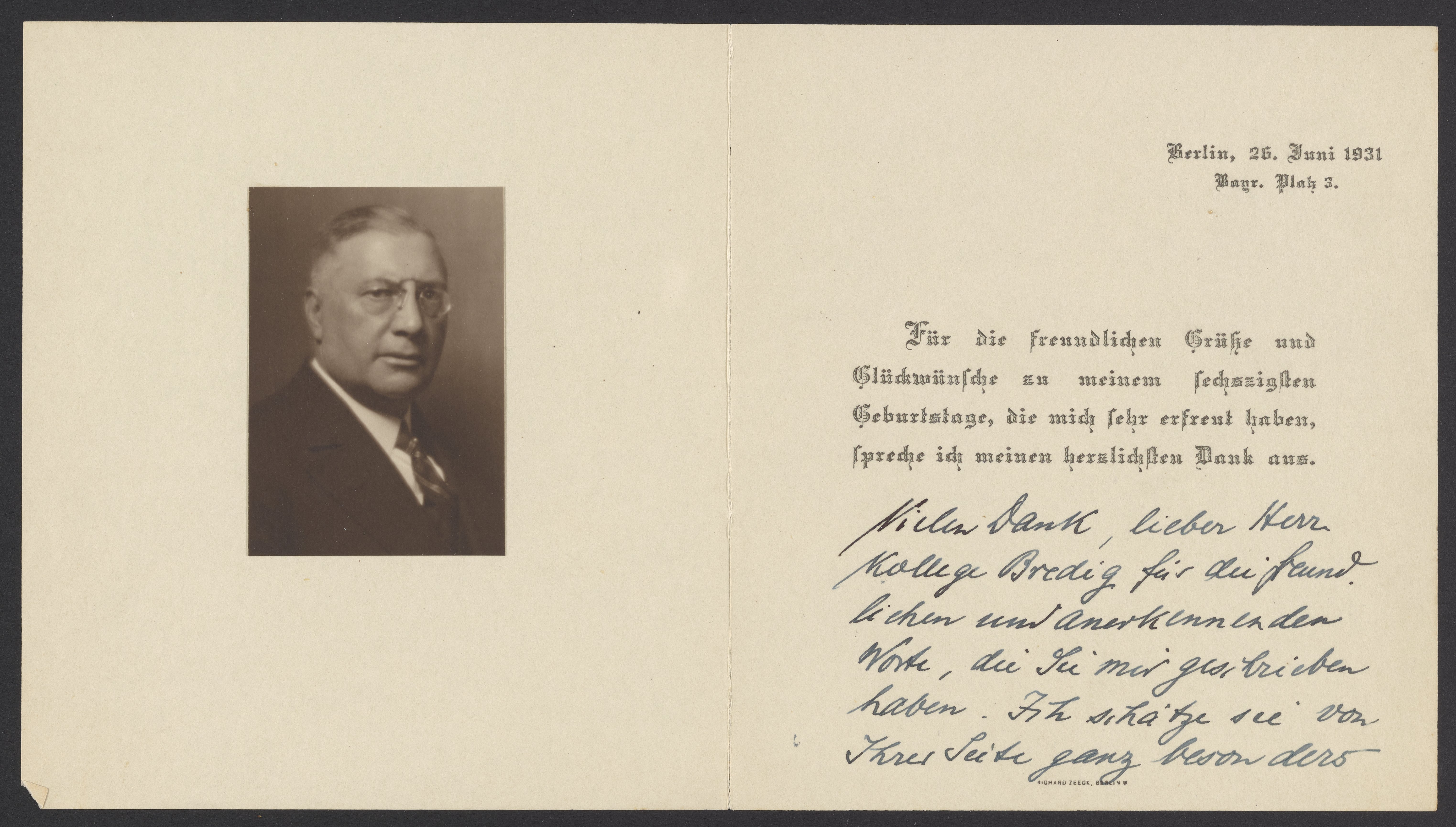 Thank you, my dear colleague Mr. Bredig, for the kind and appreciative birthday letter.
