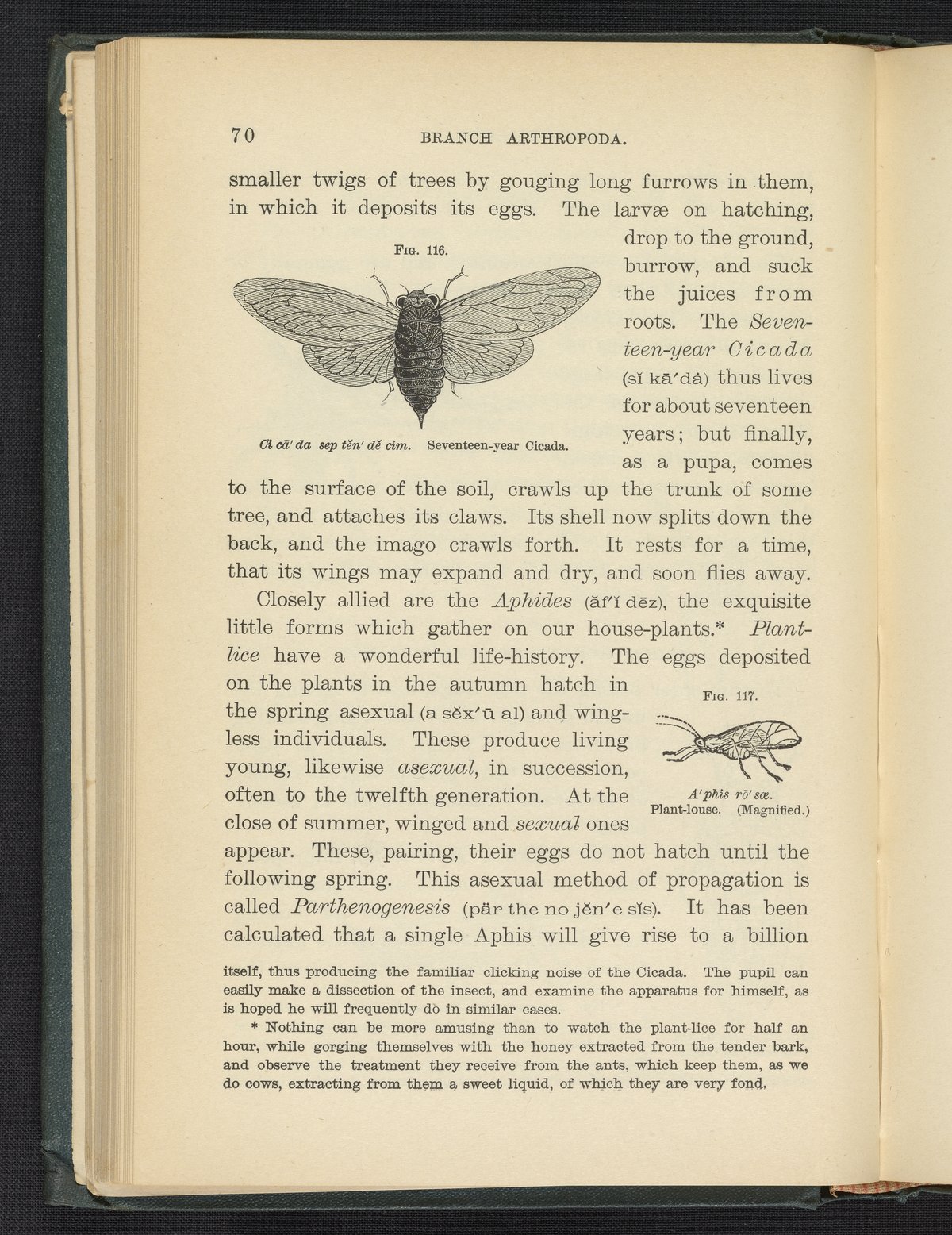 Steele, Joel Dorman, and Jenks, J. W. P. (John Whipple Potter). “Figure 116. Seventeen-Year Cicada. Figure 117. Plant-Louse.” Popular Zoology. New York, New York: Chautauqua Press, 1887. https://digital.sciencehistory.org/works/hjpf00e.