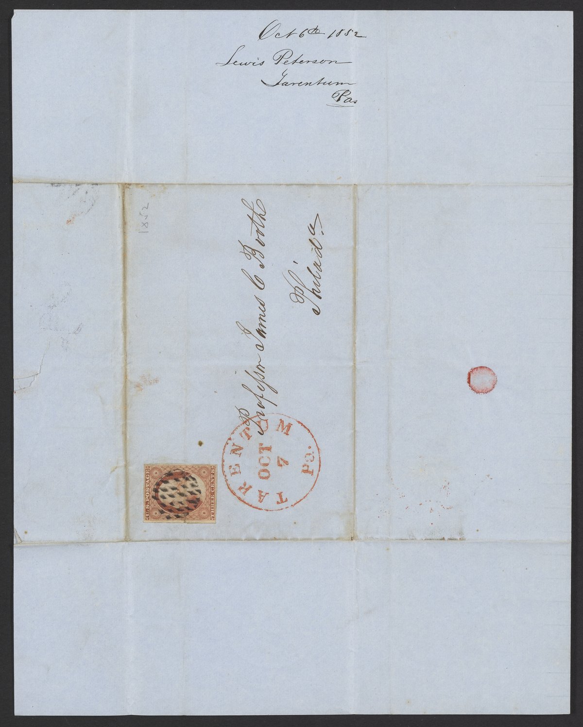 Letter from Lewis Peterson to James Curtis Booth, October 6, 1852