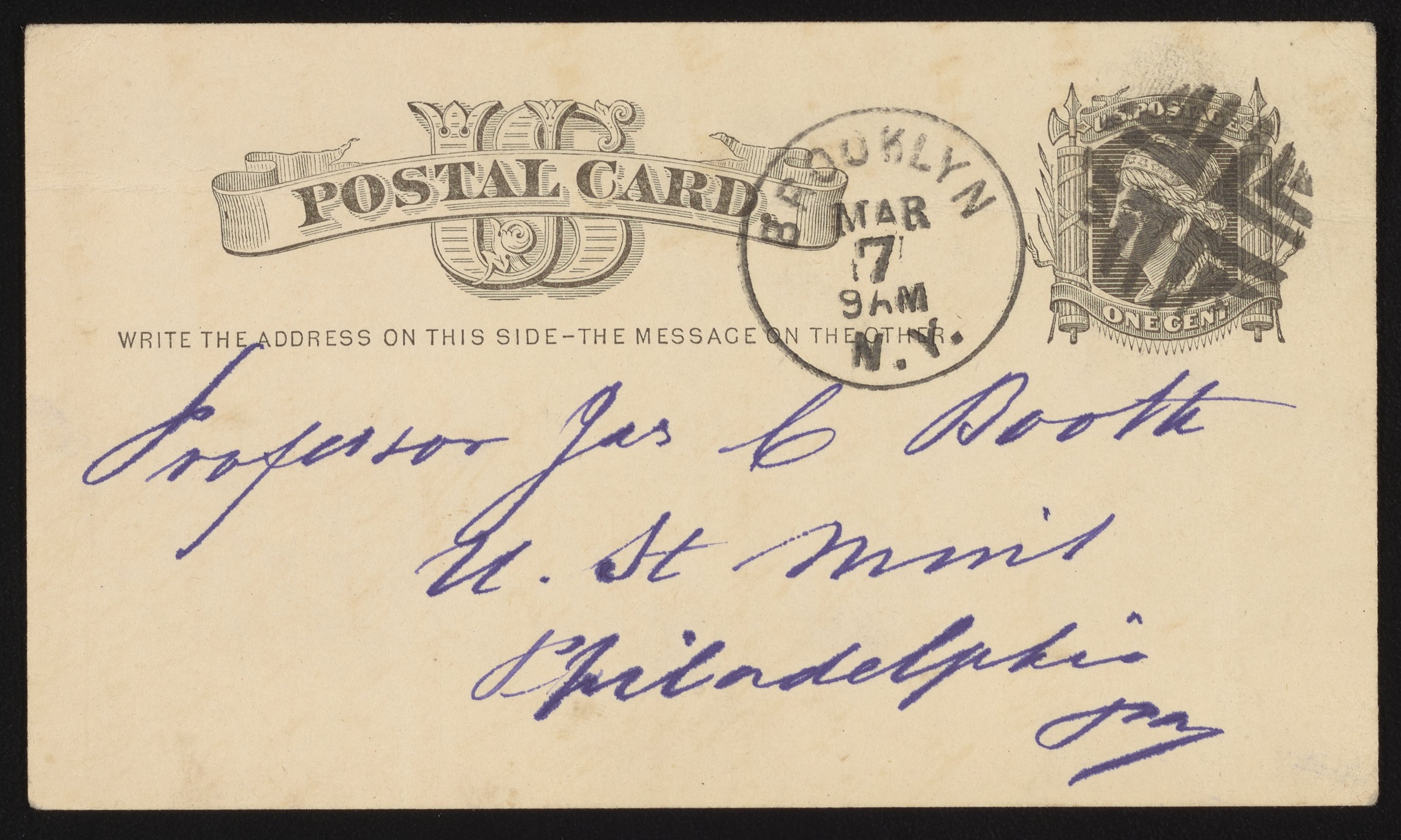 Postcard from an unidentified sender to James Curtis Booth