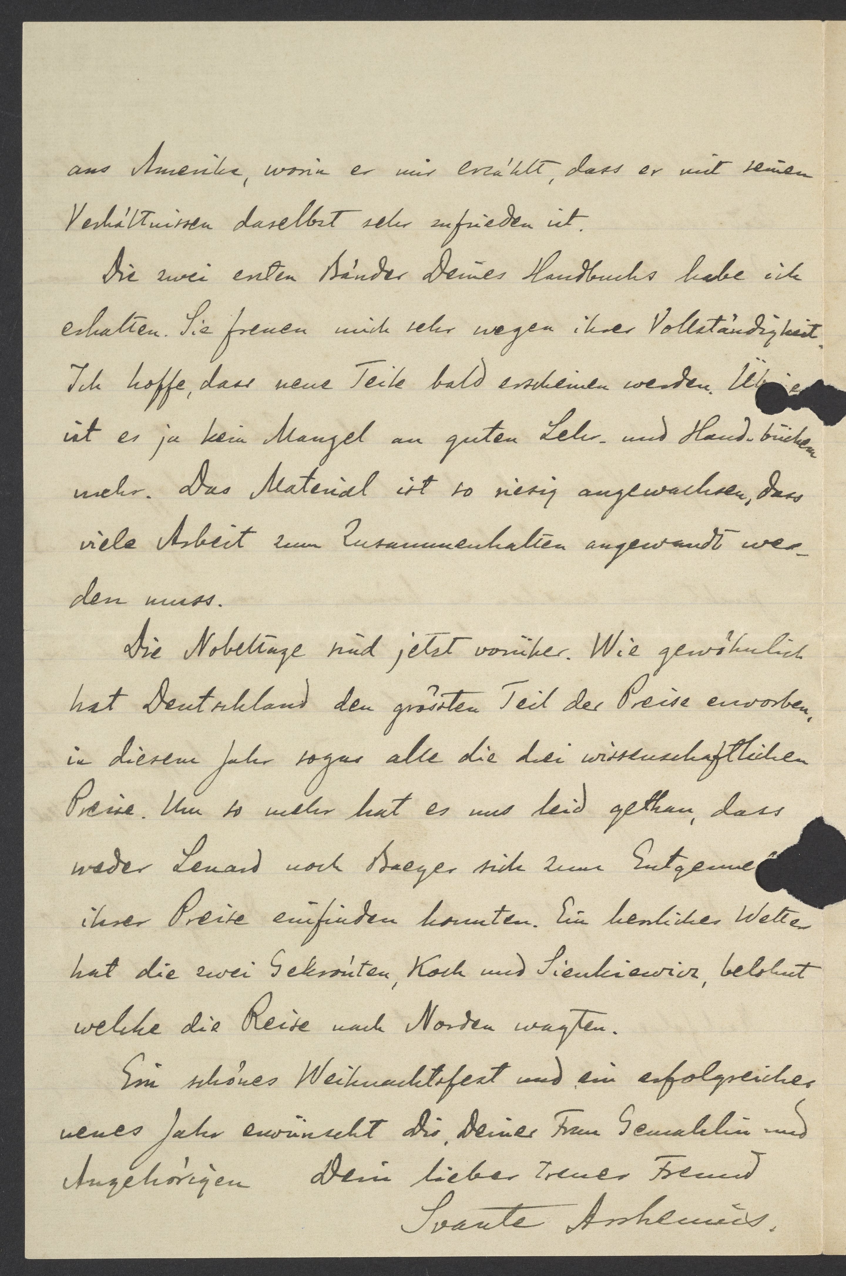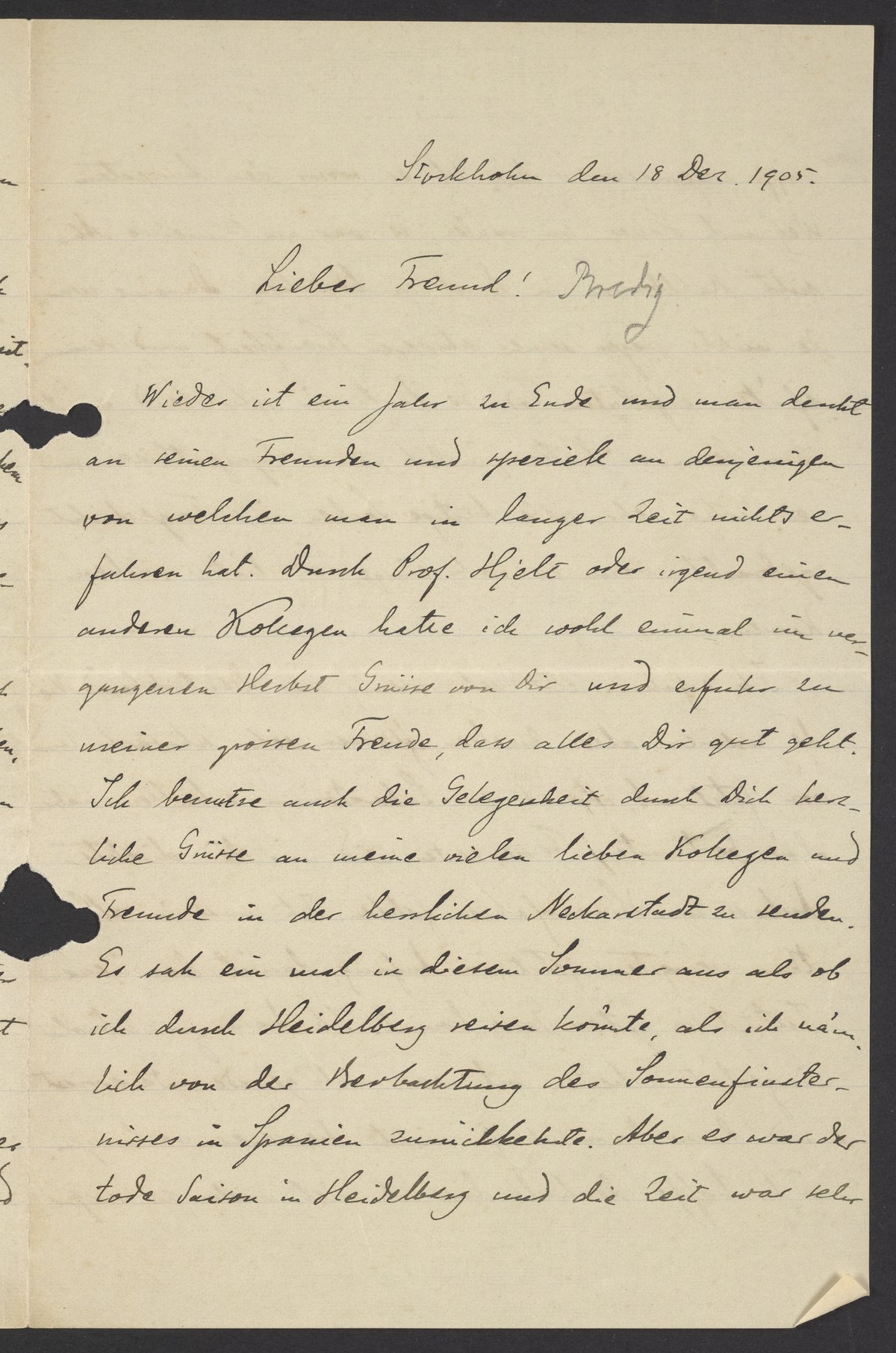 Letter from Svante Arrhenius to Georg Bredig, December 18, 1905