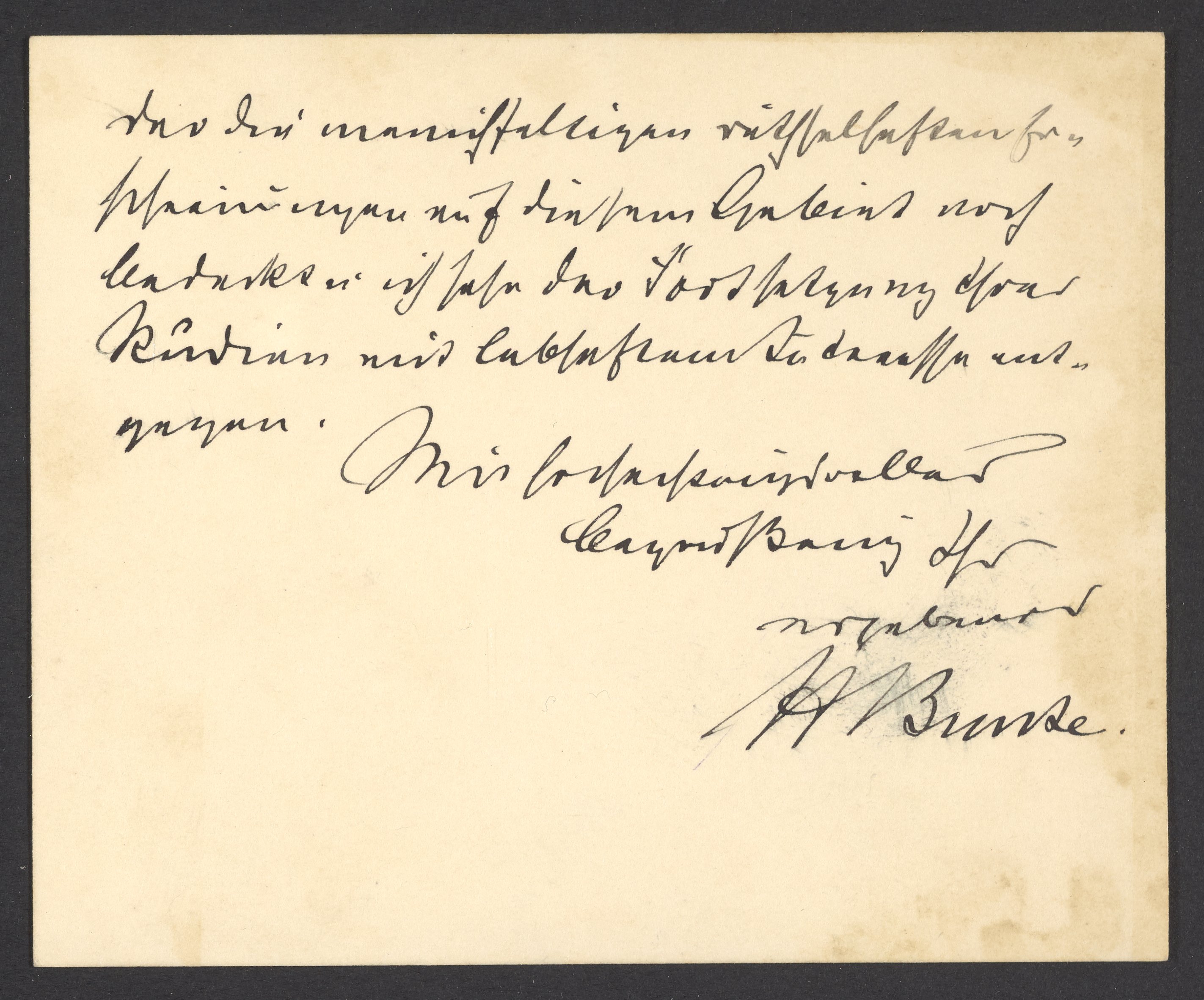 Small JPG1200 x 995px — 213 KBFull-sized JPG2838 x 2352px — 946 KBOriginal fileTIFF — 2838 x 2352px — 19.2 MBHans Bunte (1848-1925), a German chemist and professor at the Technical University of Karlsruhe, thanks Georg Bredig (1868-1944) for sending his habilitation thesis "Anorganische Fermente" (Inorganic Ferments), and praises his work. In many Germanophone countries, a habilitation is a post-doctoral degree intended to demonstrate a scholar's capacity for research in his or her field and is usually required to attain the rank of professor.