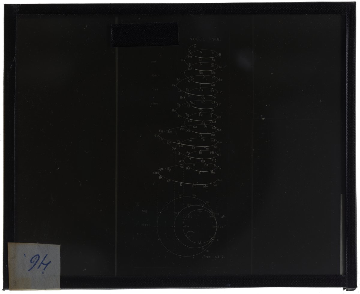Vogel, Rudolf, and Edward G. Mazurs. “Periodic Table in Style of Helix with Three Sizes of Revolutions.” Glass (material), circa 1918–1957. Edward G. Mazurs Collection of Periodic Systems Images, Box 2. Science History Institute. Philadelphia. https://digital.sciencehistory.org/works/hq37vp095.