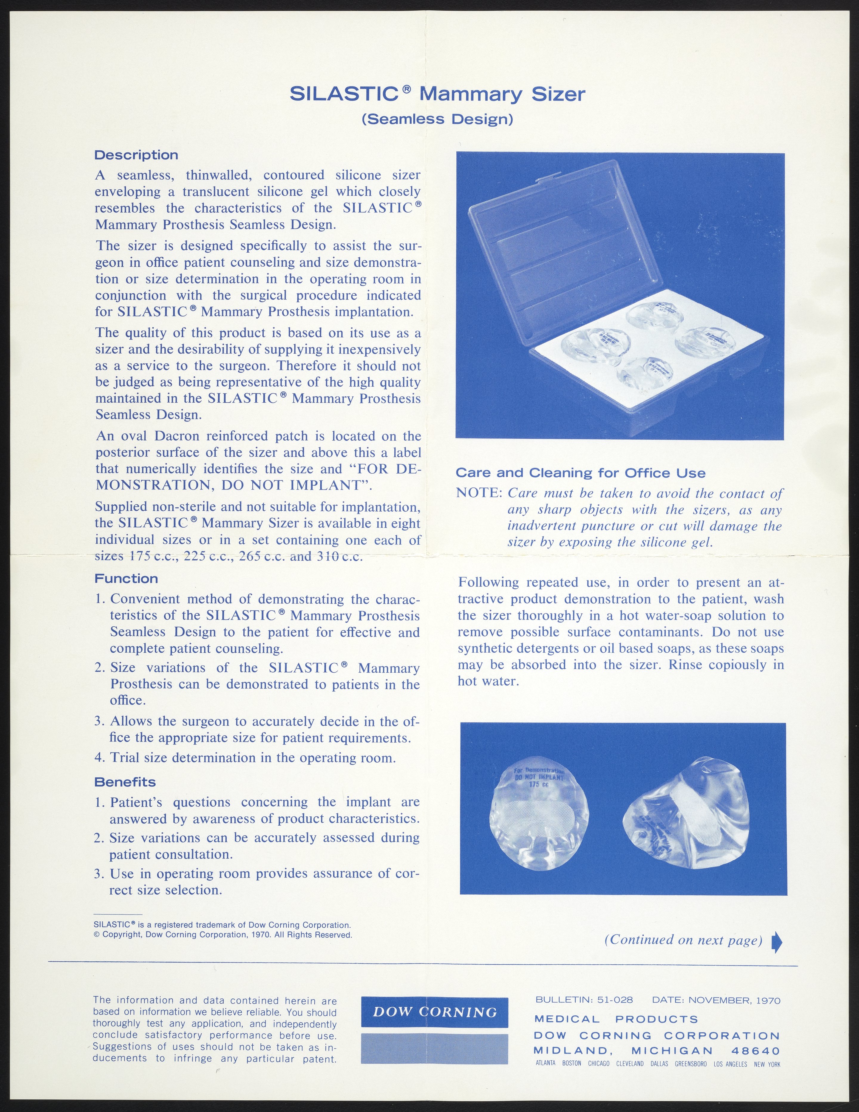 SILASTIC demonstration mammary sizer implant seamless design 350 CC