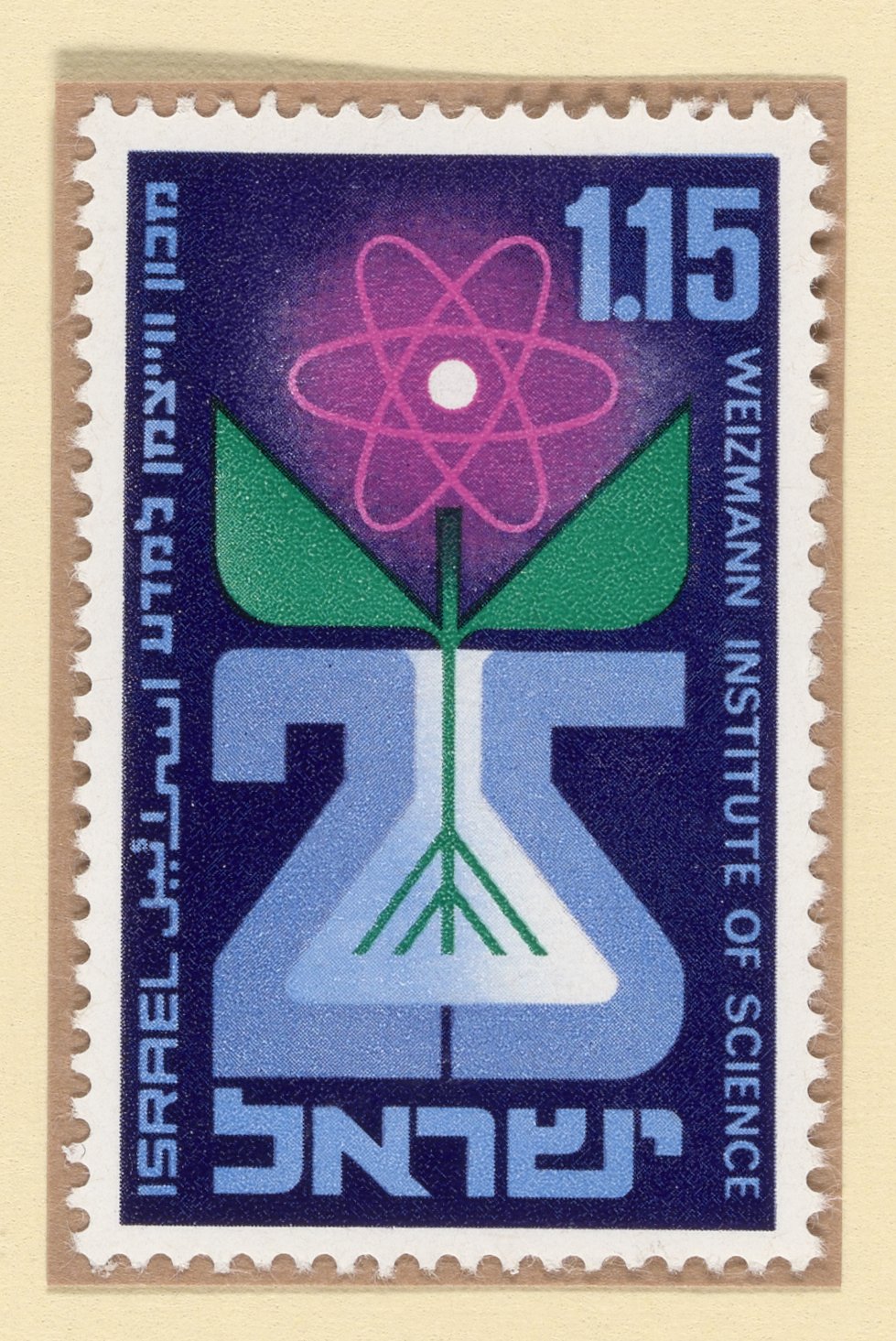 “Stamp Commemorating the Weizmann Institute of Science,” 1969. Witco Stamp Collection, Box 1. Science History Institute. Philadelphia. https://digital.sciencehistory.org/works/htlrxe1.