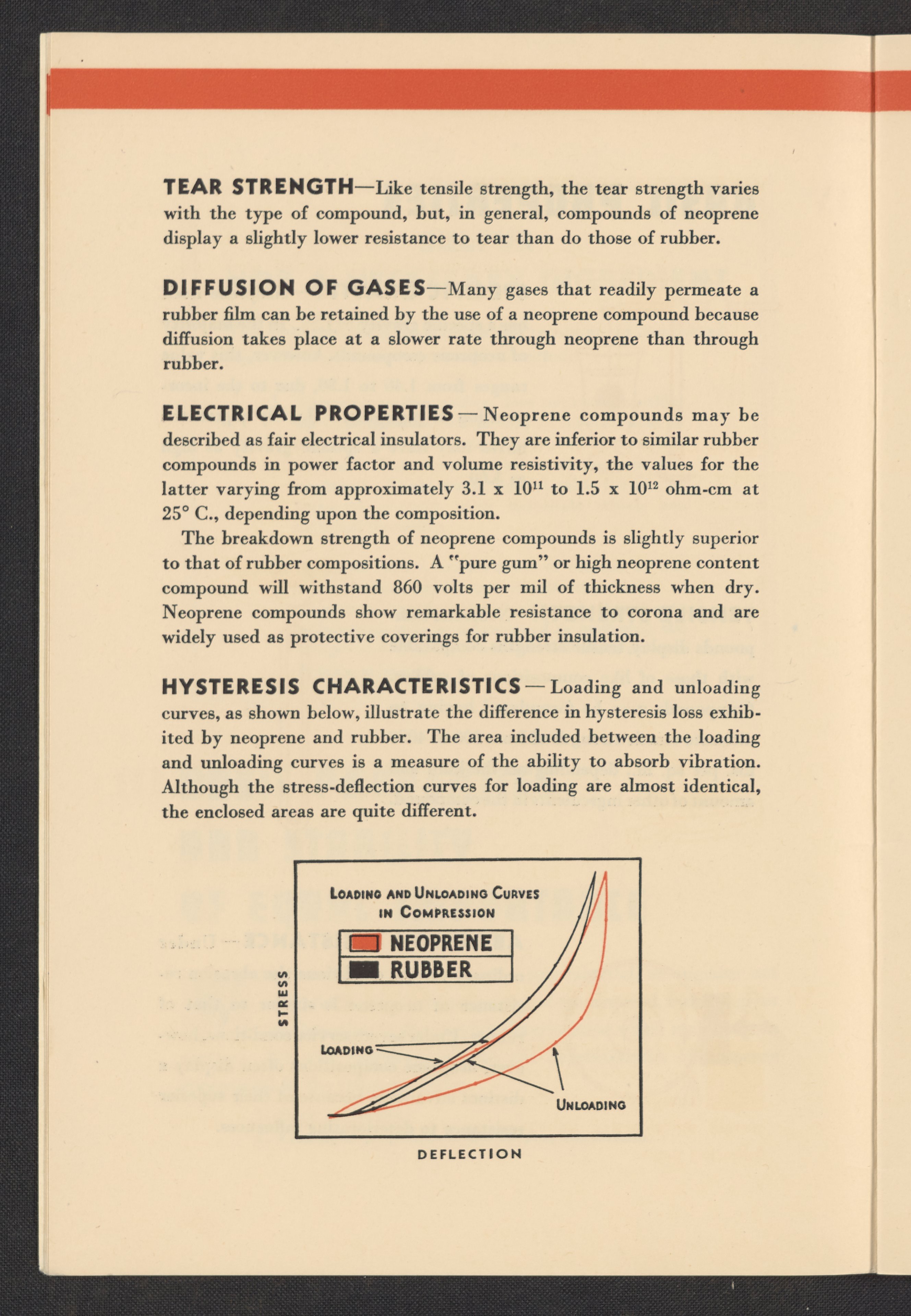 E.I. du Pont de Nemours & Company. Rubber Chemicals Division. “Neoprene A Remarkable Engineering Material.” Wilmington, Delaware, 1943. TS1925 .D87 1943. Science History Institute. Philadelphia. https://digital.sciencehistory.org/works/hw7347x.