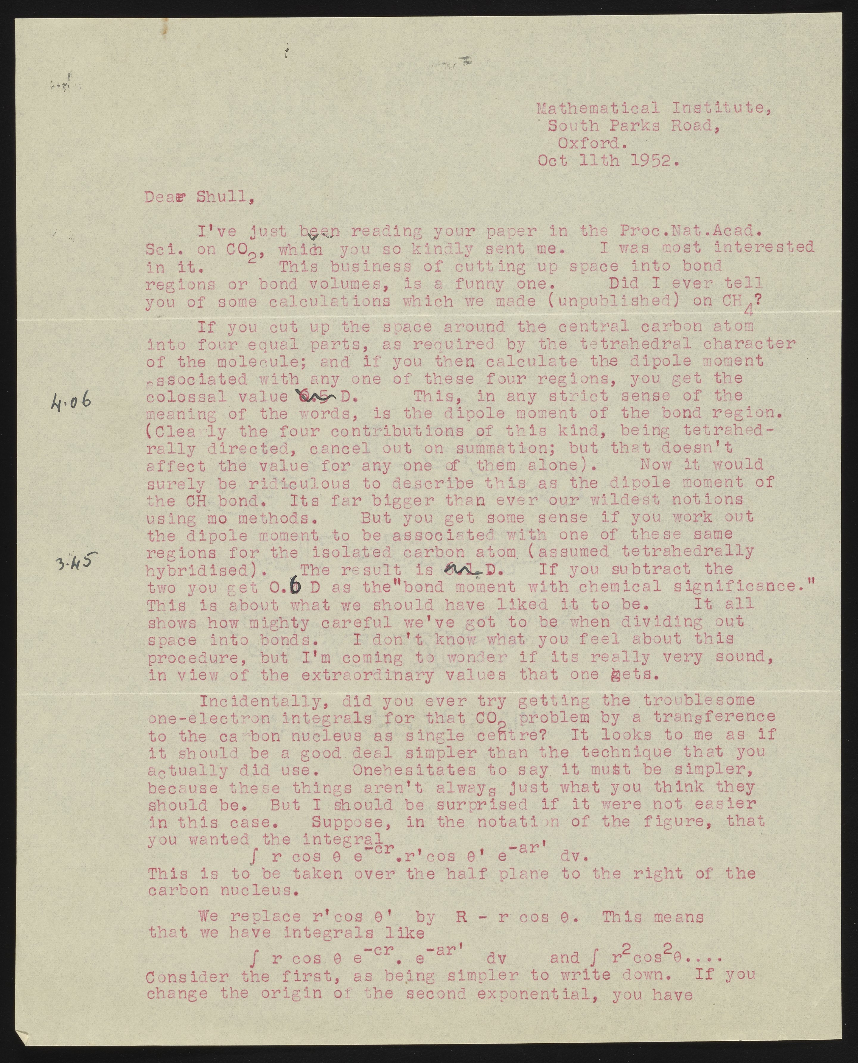 Coulson, C. A. (Charles Alfred). “Letter from Charles Coulson to Harrison Shull, 1952,” October 11, 1952. Robert S. Mulliken & Harrison Shull Correspondence, Box 1, Folder 3. Science History Institute. Philadelphia. https://digital.sciencehistory.org/works/hx11xf29x.