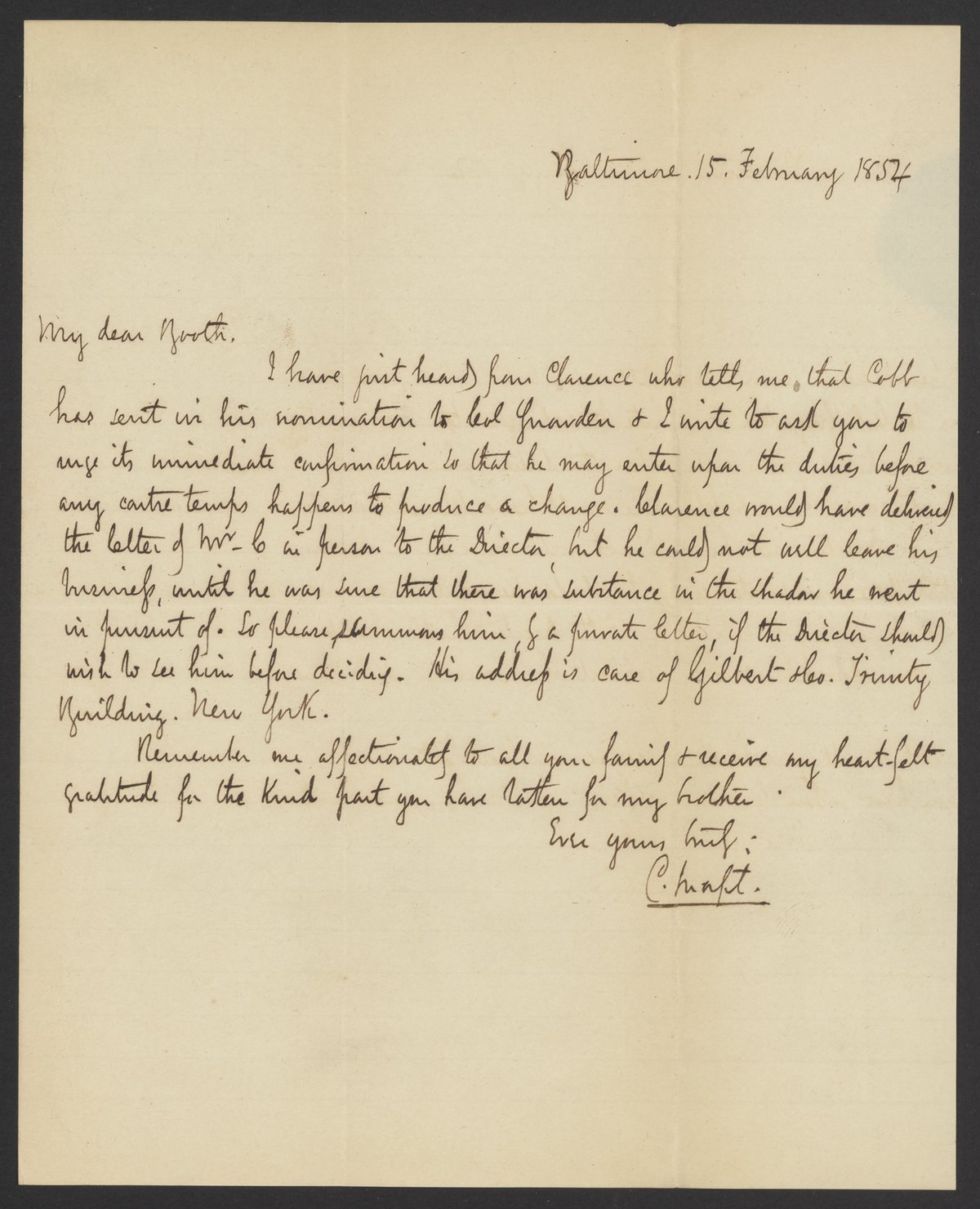 Morfit, Campbell. “Letter from Campbell Morfit to James Curtis Booth, February 15, 1854,” February 15, 1854. Papers of James Curtis Booth, Box 1, Folder 10. Science History Institute. Philadelphia. https://digital.sciencehistory.org/works/hy2u1xn.