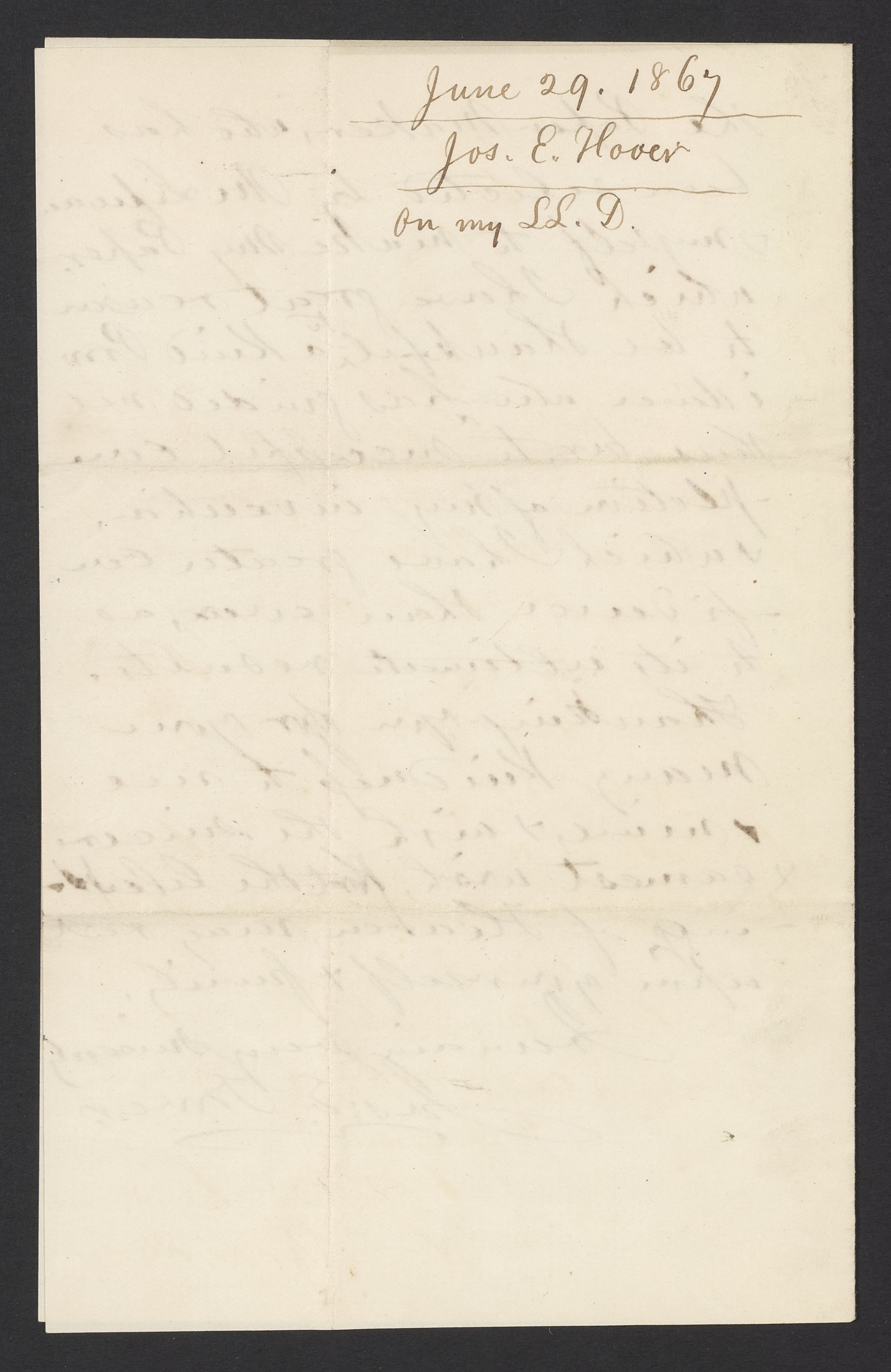 Letter from Joseph E. Hoven to James Curtis Booth, June 29, 1867