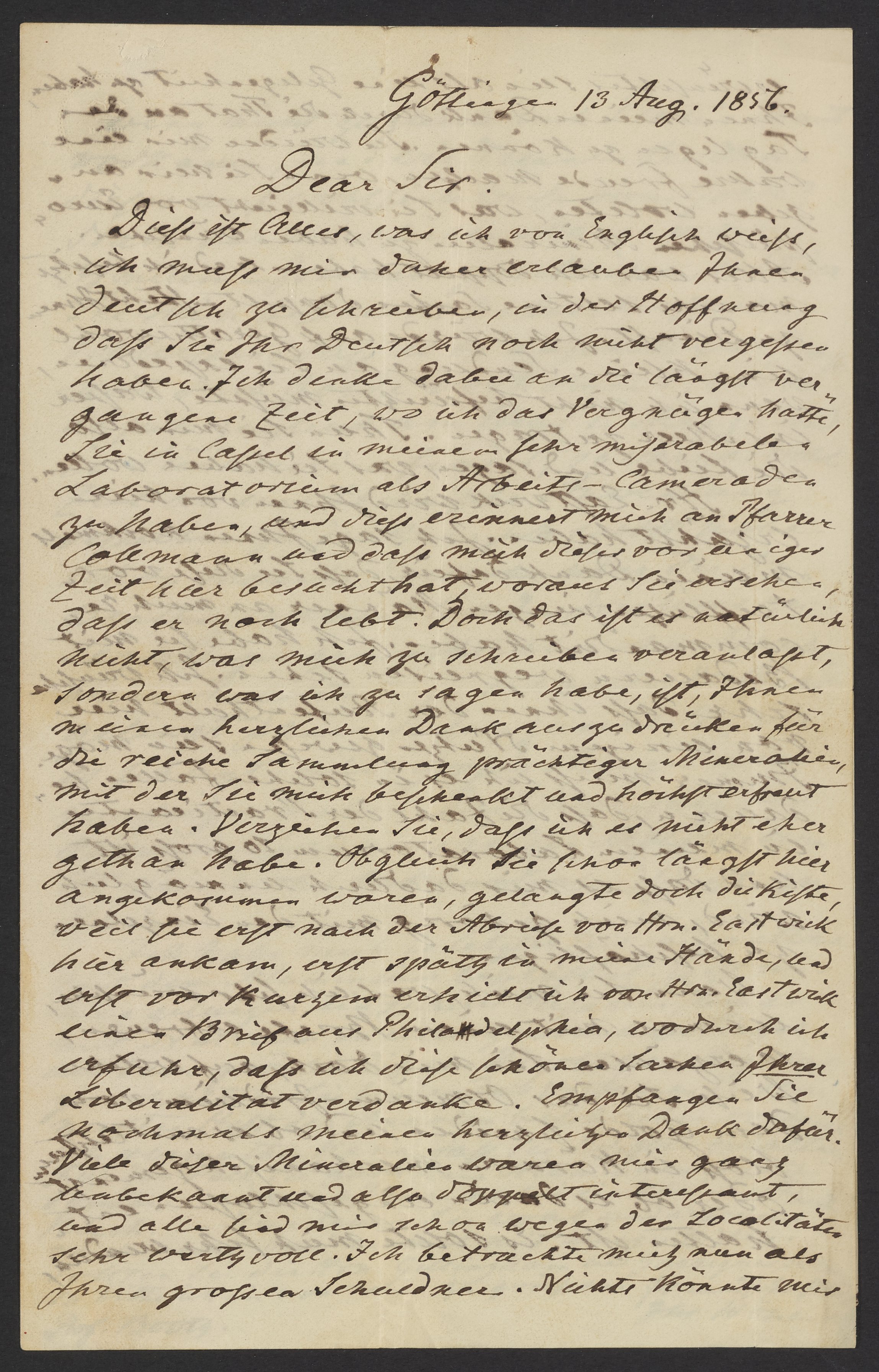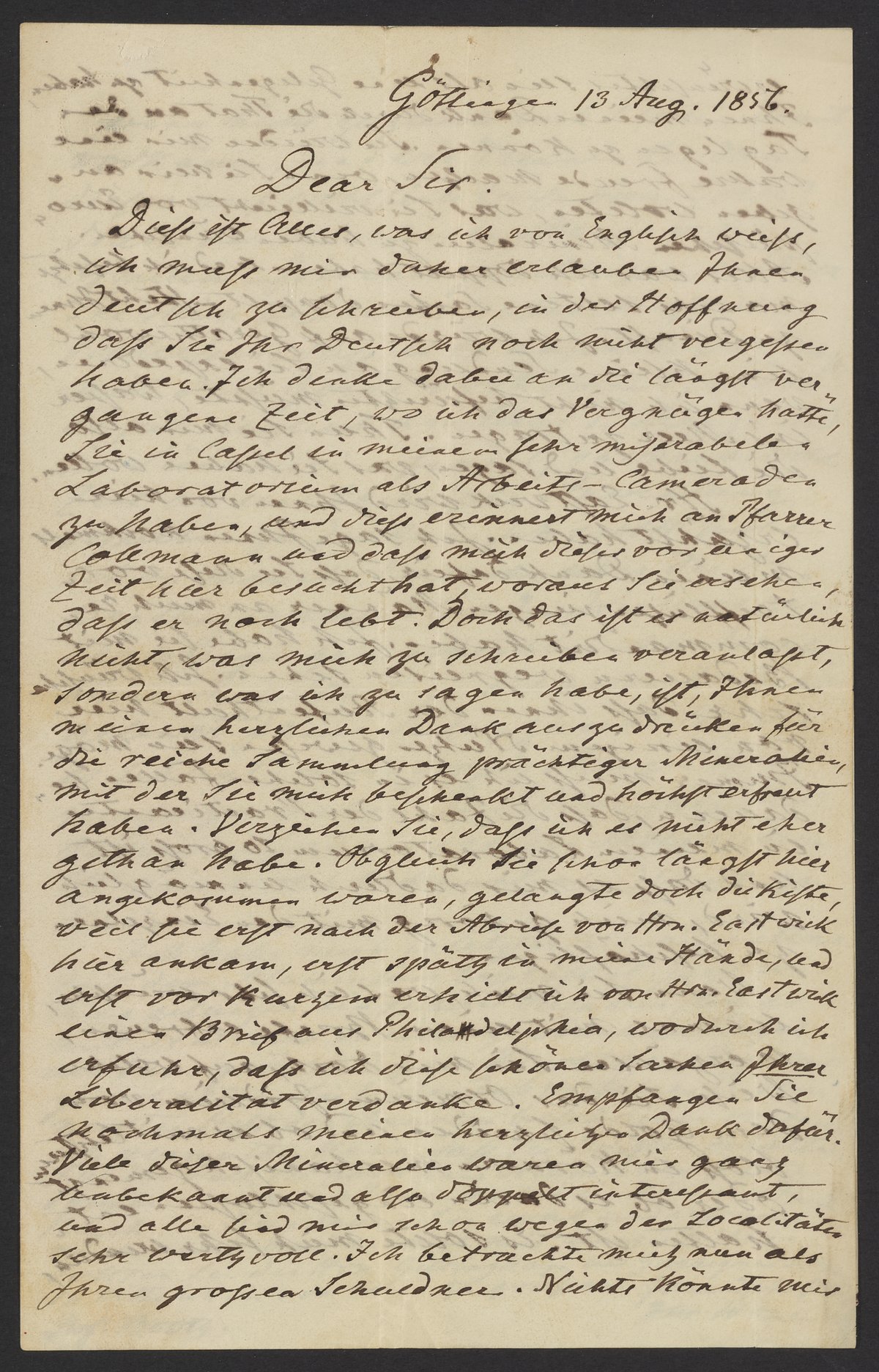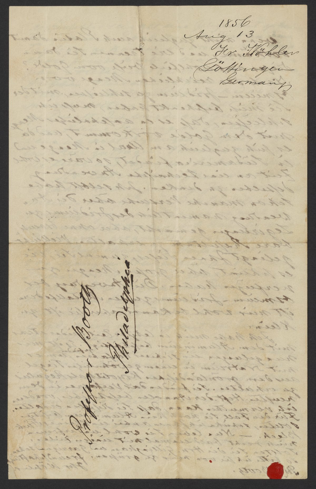 Letter from Friedrich Wöhler to James Curtis Booth, August 13, 1856
