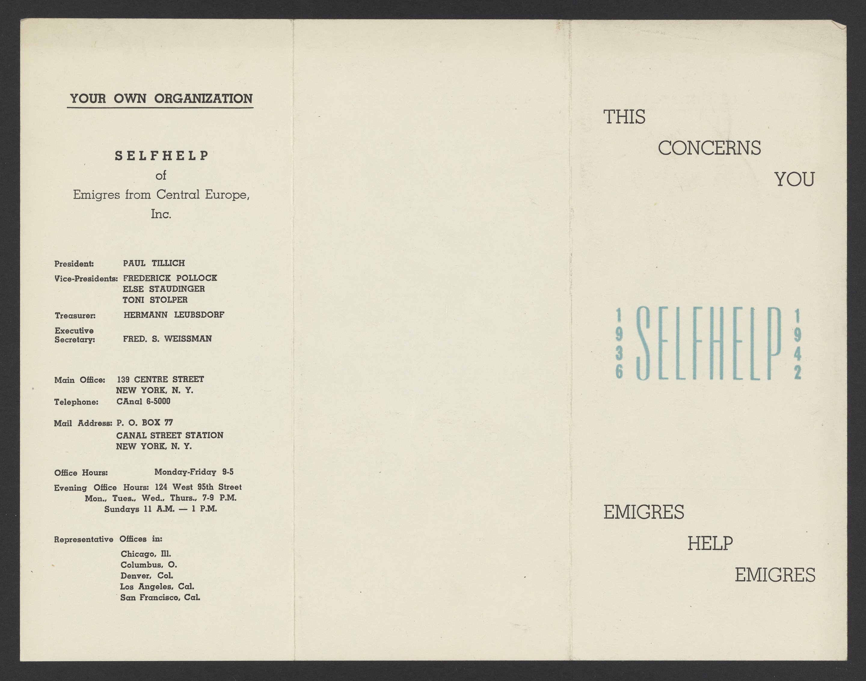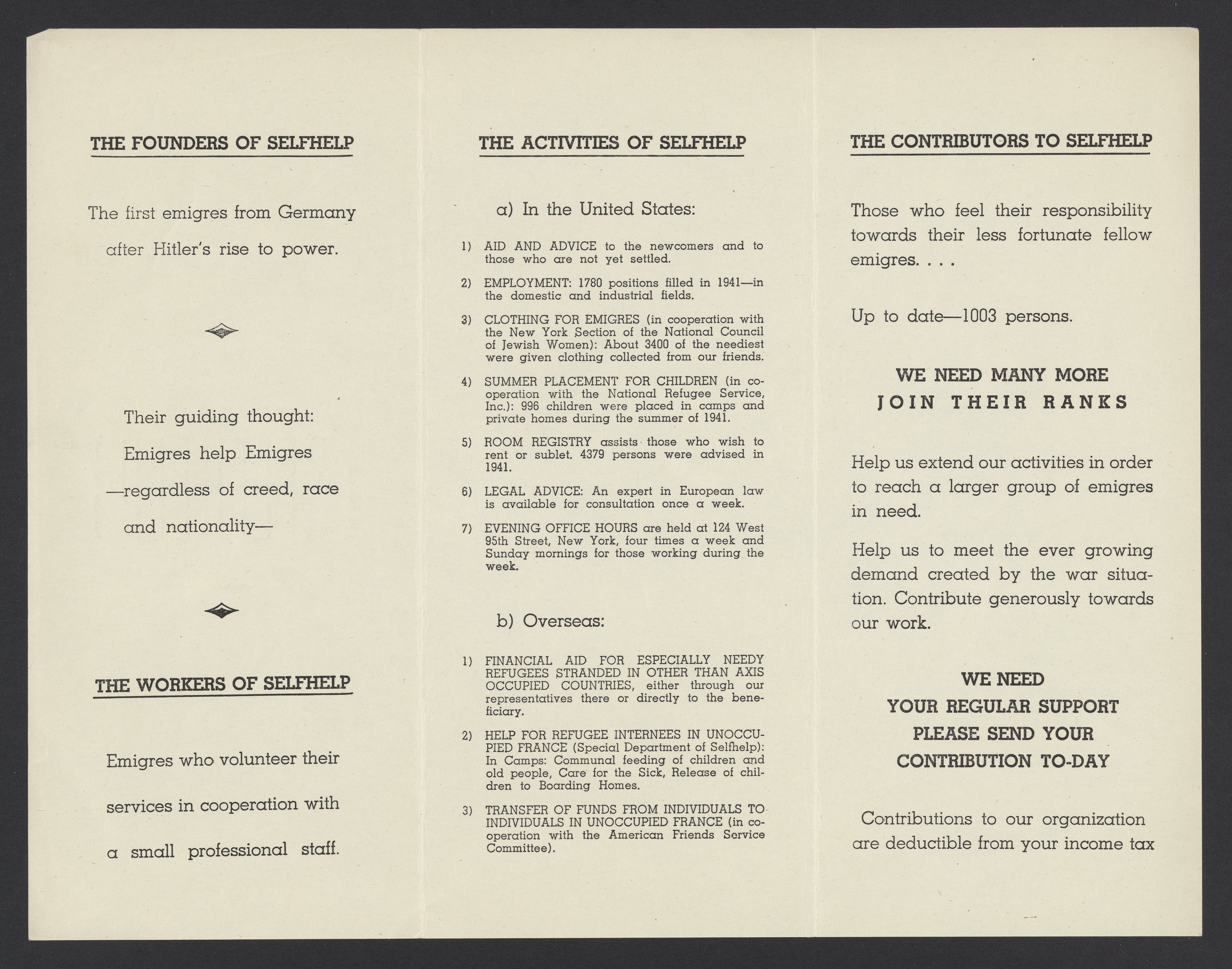 Selfhelp of Emigres from Central Europe, Inc. informational pamphlet