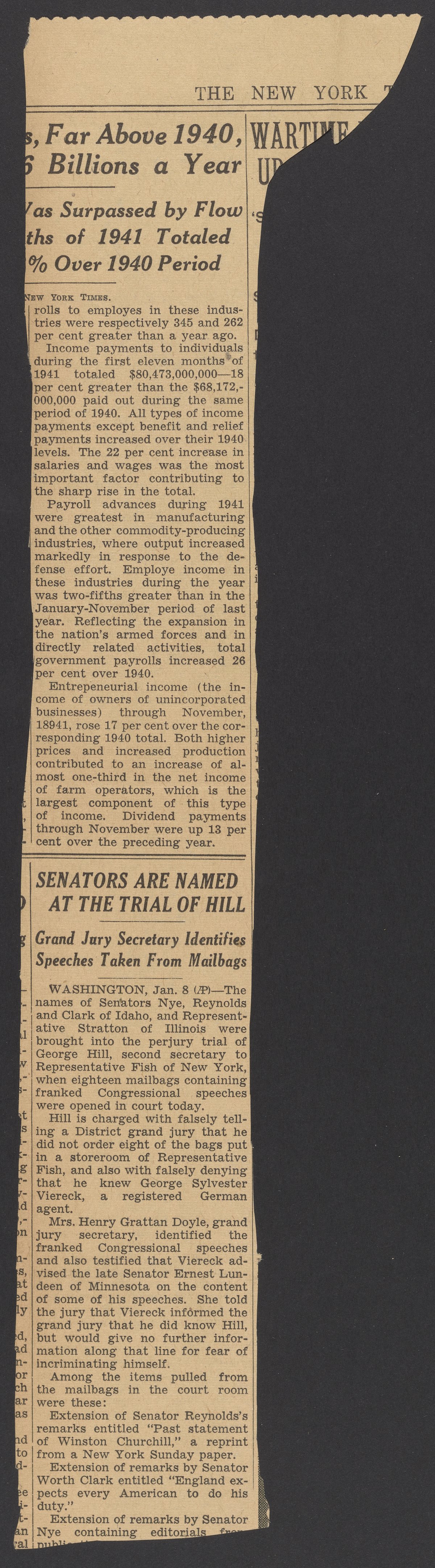 “U.S. Attorneys Give Rules for Aliens.” New York, New York: New York times, January 9, 1942. Papers of Georg and Max Bredig, Box 10, Folder 26. Science History Institute. Philadelphia. https://digital.sciencehistory.org/works/iljrjaq.
