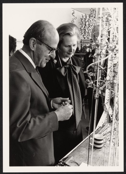 Margaret Thatcher and Max Perutz in the Laboratory of Molecular Biology Model Room, 1980.