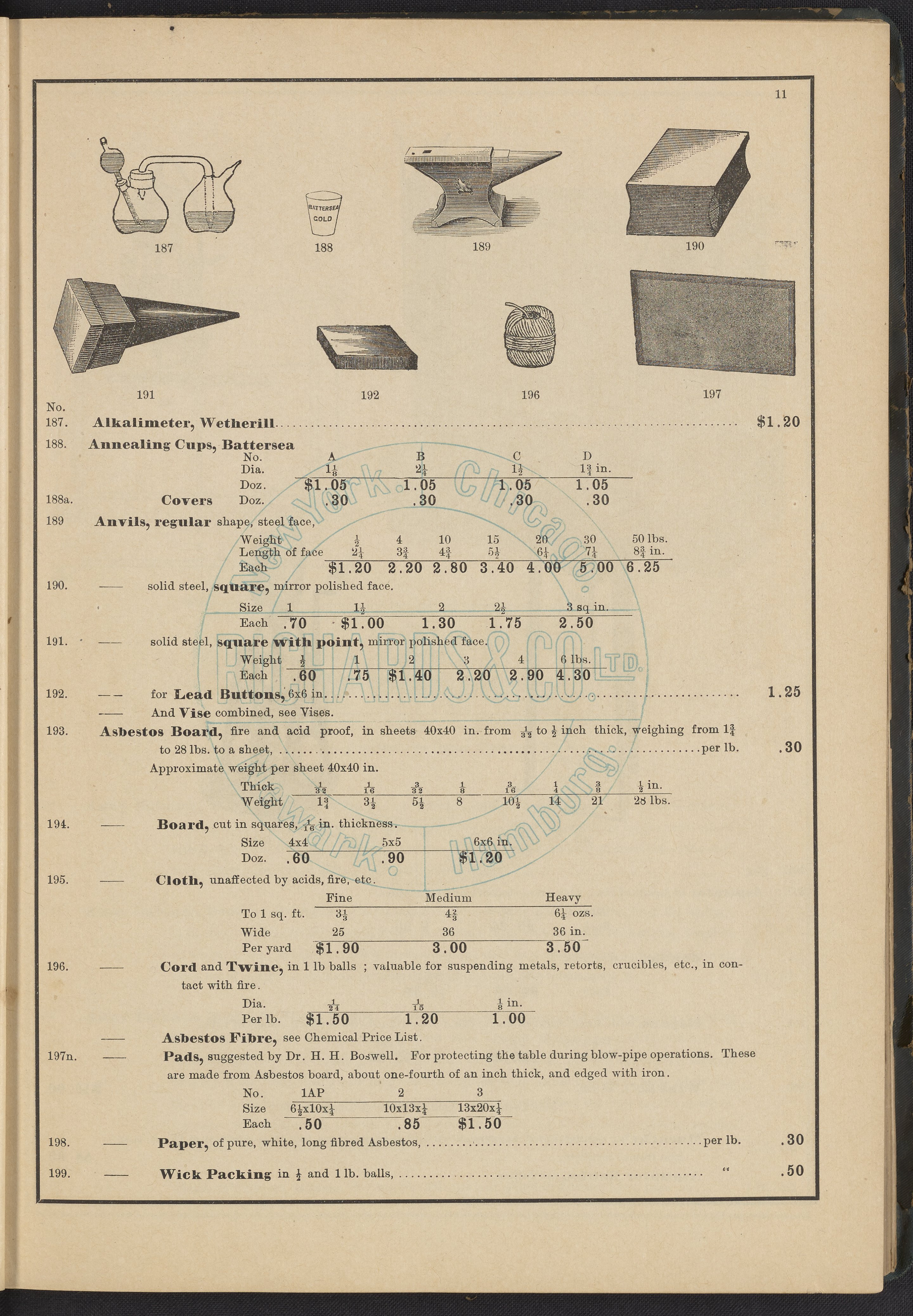 Richards & Co. (New York, N.Y.). “Illustrated Catalogue of Chemical and Physical Apparatus and Assay Goods, Manufactured and Imported by Richards & Co., Limited.” New York, New York: Richards & Co. (New York, N.Y.), 1890–1899. Q184 .R53. Science History Institute. Philadelphia. https://digital.sciencehistory.org/works/ip5xqsz.