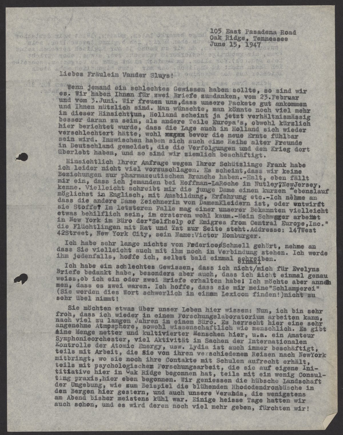 Bredig, Max Albert. “Letter from Max Bredig to Anny Van Der Sluys, June 15, 1947,” June 15, 1947. Papers of Max Bredig, Box 3, Folder 8. Science History Institute. Philadelphia. https://digital.sciencehistory.org/works/iued28t.