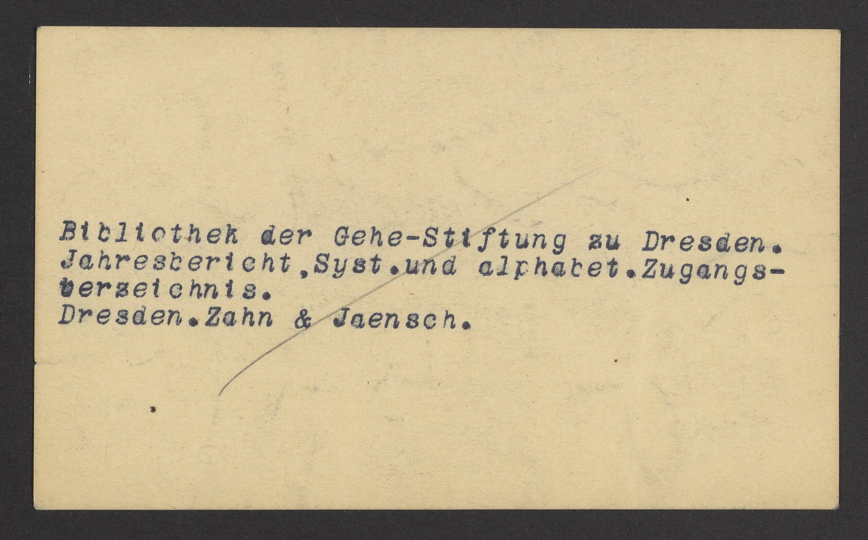 Catalog card from the Library of the Dresden Gehe-Foundation