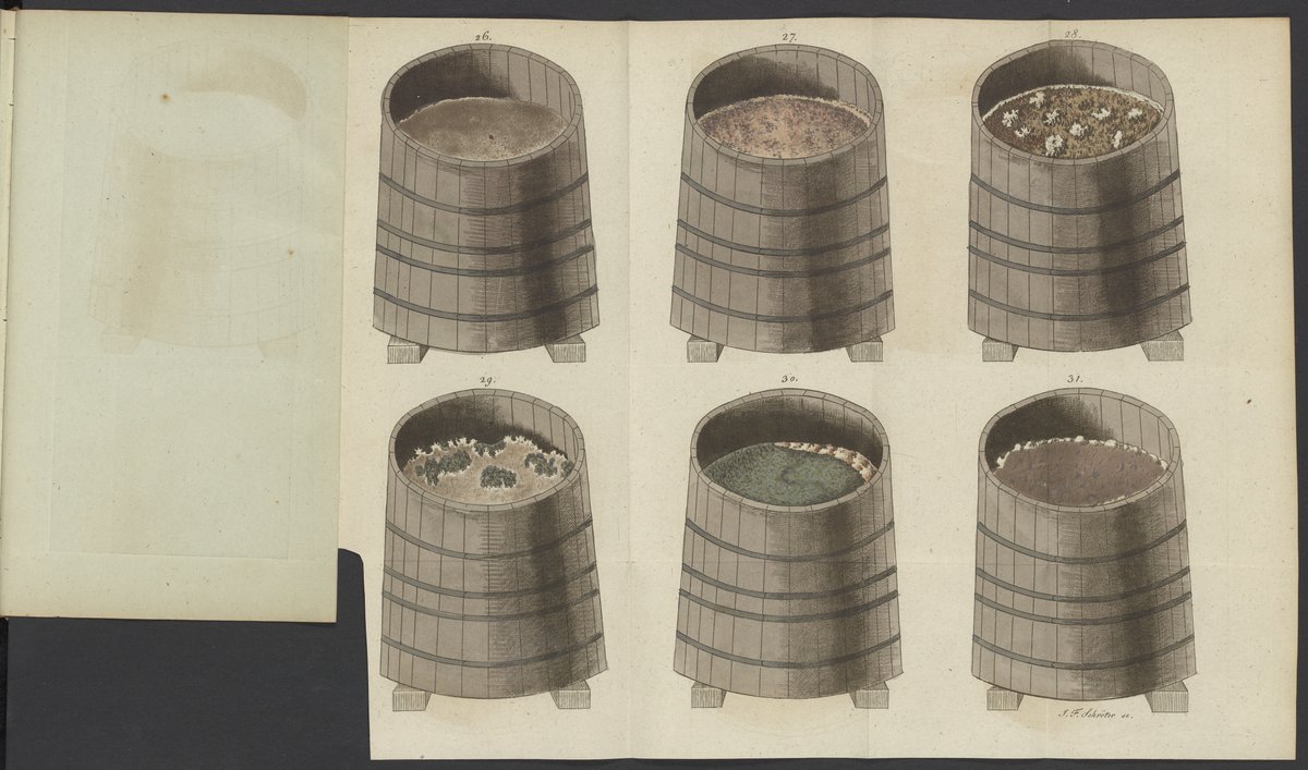 Small JPG1200 x 1848px — 532 KBLarge JPG2880 x 4436px — 2.5 MBFull-sized JPG3220 x 4960px — 3.1 MBOriginal fileTIFF — 3220 x 4960px — 45.7 MBA detailed guide for brewers, distillers, vinegar makers, and brewing enthusiasts. The volume is divided into three parts, malting, fermentation processes, and distilling. Following the text, the work contains 13 foldouts, each with copperplate illustrations. These decorative panels depict vats at the various stages of the brewing process, brewing equipment, and hops. The digitization is limited to the volume’s plates.