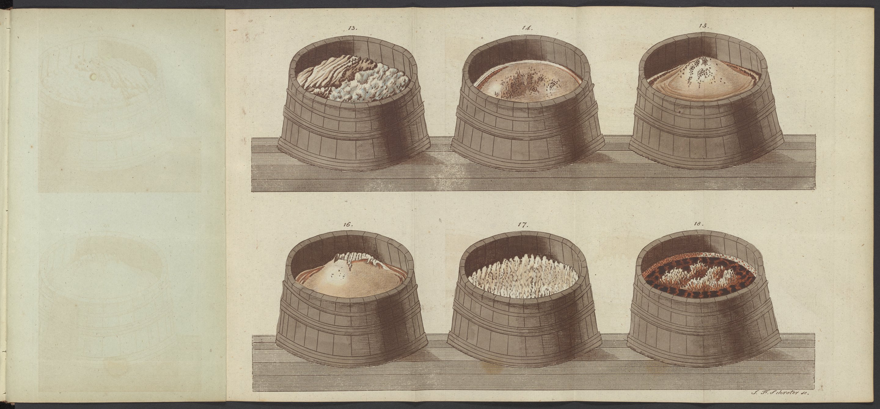 Small JPG1200 x 1848px — 532 KBLarge JPG2880 x 4436px — 2.5 MBFull-sized JPG3220 x 4960px — 3.1 MBOriginal fileTIFF — 3220 x 4960px — 45.7 MBA detailed guide for brewers, distillers, vinegar makers, and brewing enthusiasts. The volume is divided into three parts, malting, fermentation processes, and distilling. Following the text, the work contains 13 foldouts, each with copperplate illustrations. These decorative panels depict vats at the various stages of the brewing process, brewing equipment, and hops. The digitization is limited to the volume’s plates.