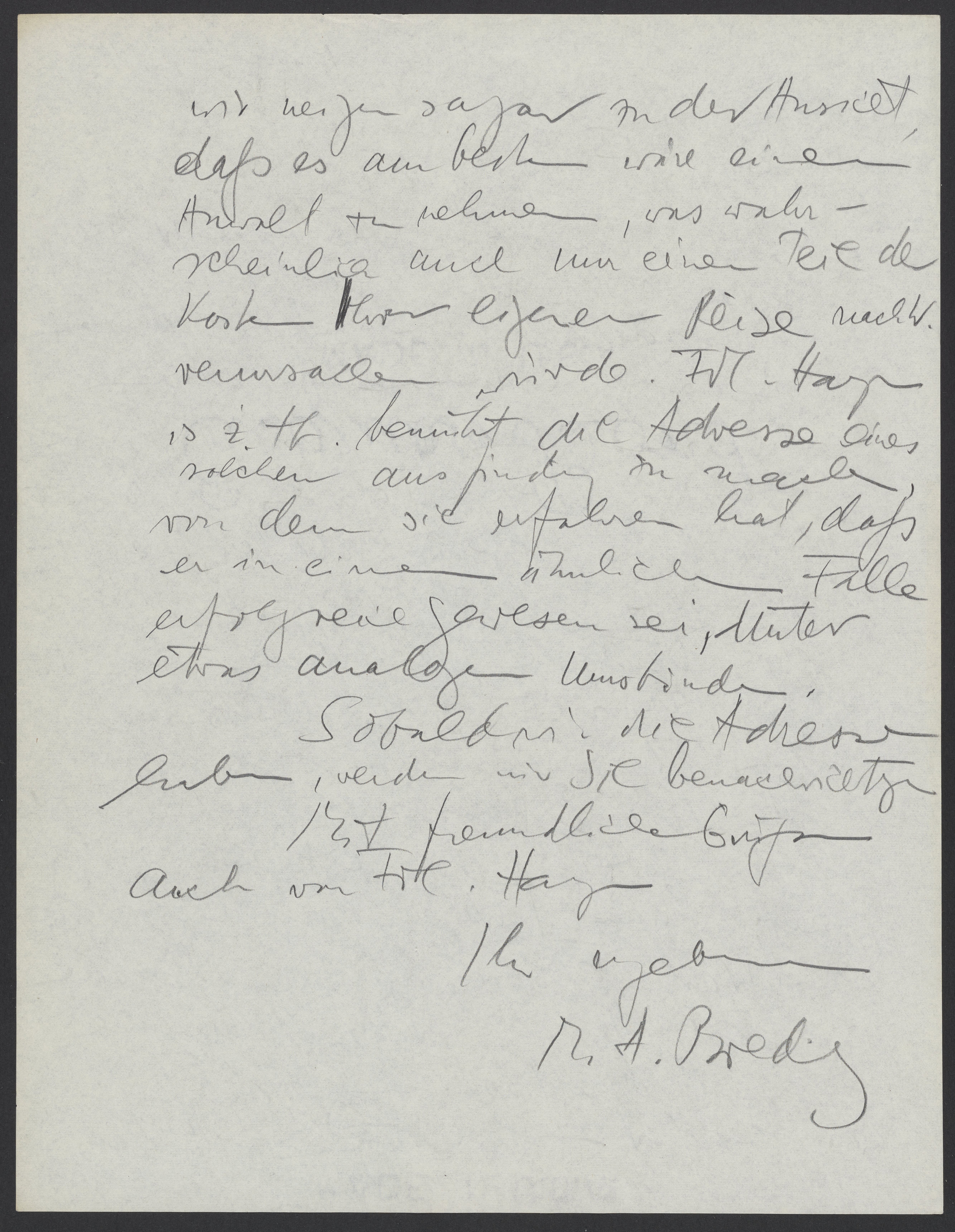 Mit freundlichen Grüßen, auch von Frl. Hayn
