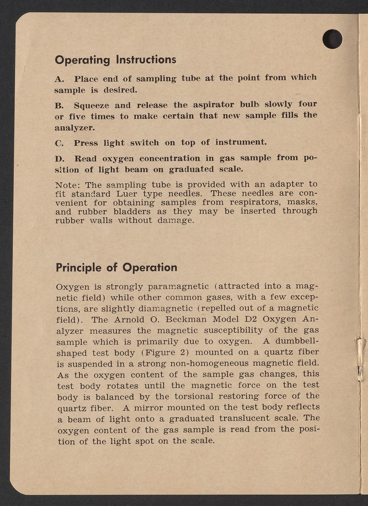 Beckman Instruments, Inc. “Operating Instructions and Technical Information, Model D2 Oxygen Analyzer,” 1950–1959. Beckman Historical Collection, Box 104, Folder 141. Science History Institute. Philadelphia. https://digital.sciencehistory.org/works/j098zb837.