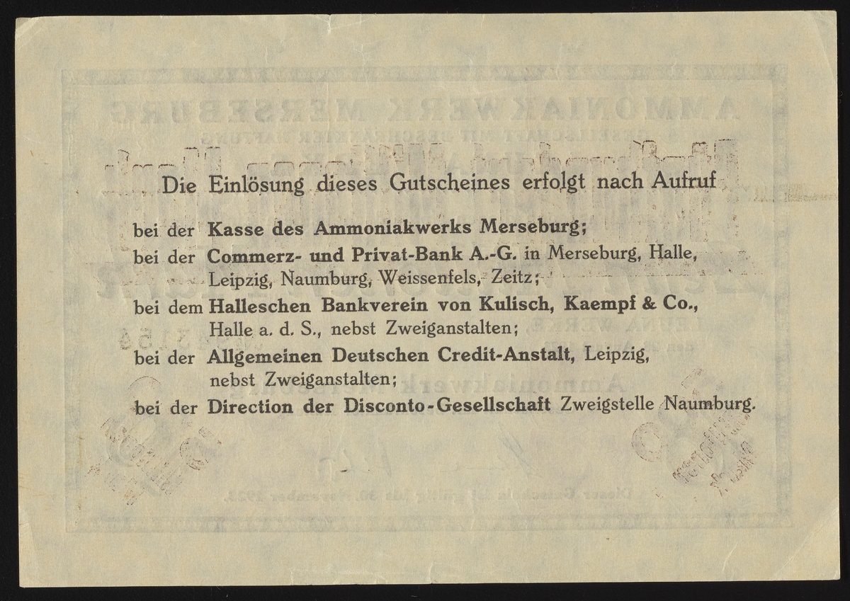 • Badische Anilin- & Soda-Fabrik ten million/five hundred million Mark emergency money bill