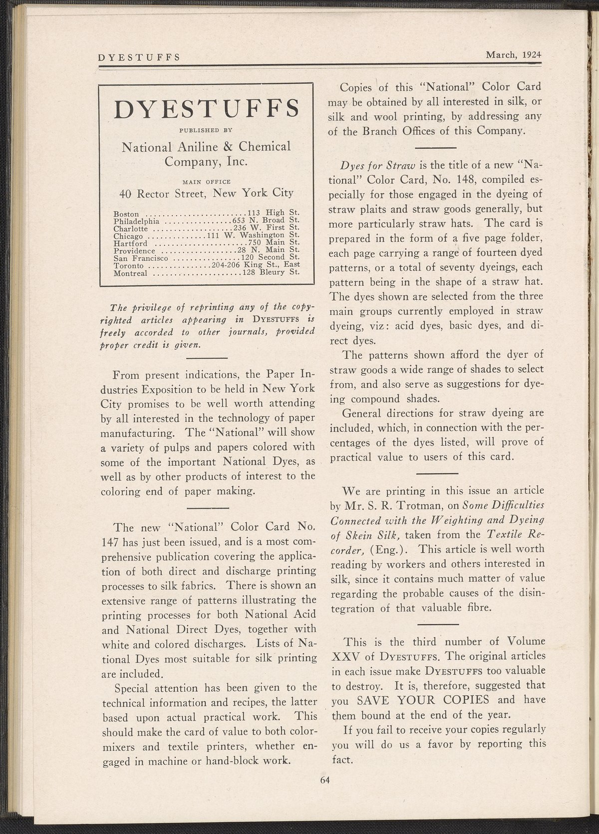 Allied Chemical & Dye Corporation. National Aniline Division. “Dyestuffs, Volume 25 Number 3.” New York, New York, March 1924. MR036D005. Science History Institute. Philadelphia. https://digital.sciencehistory.org/works/j0lvw17.