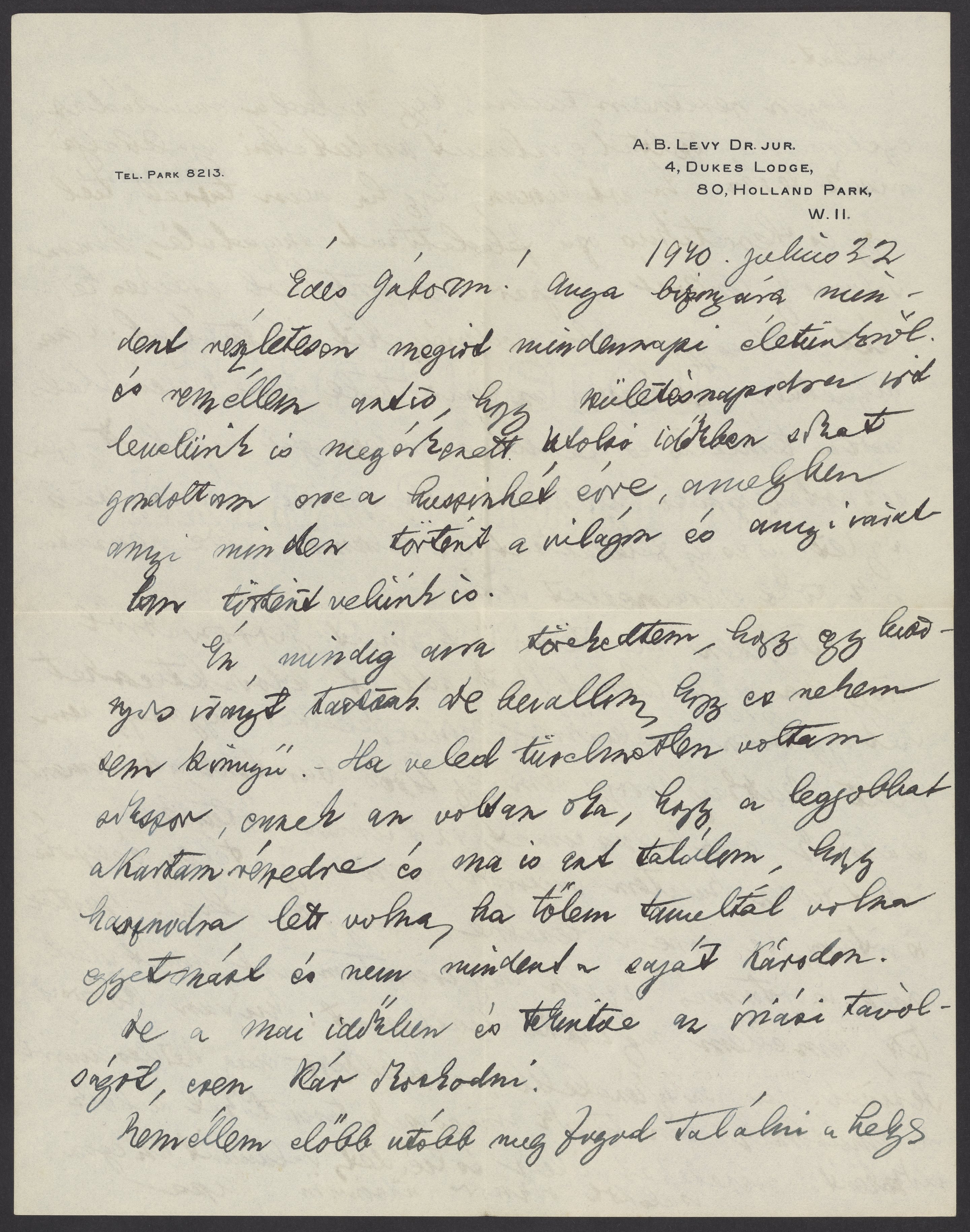 Letter to Gabor B. Levy from Albert B. Levy, July 22, 1940