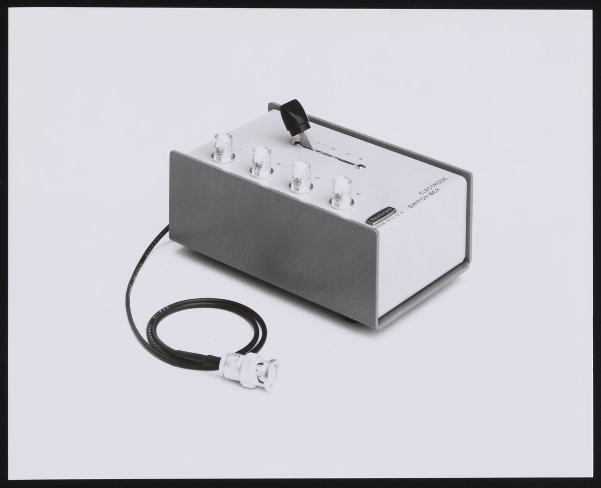 “Beckman Model 160 Switch Box, Electrode,” n.d. Beckman Historical Collection, Box 77. Science History Institute. Philadelphia. https://digital.sciencehistory.org/works/j3860702d.