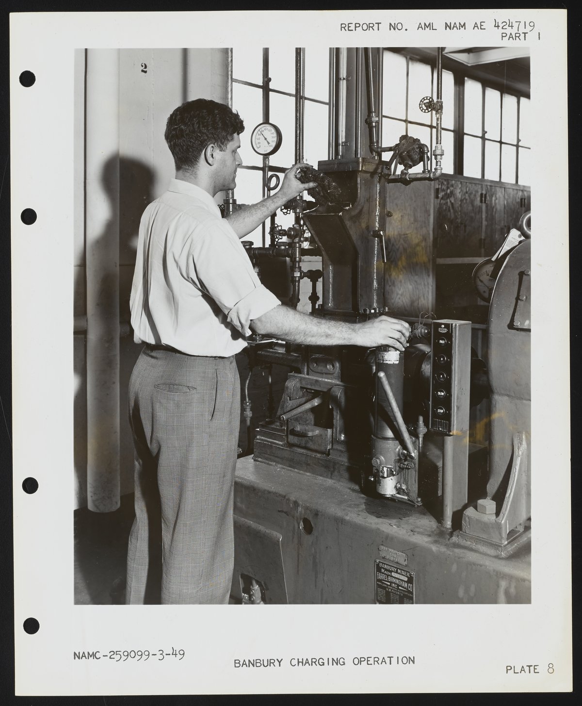 Naval Air Experimental Station, and United States. Navy. “Banbury Charging Operation,” circa 1949. Photographs from the Papers of J. Hartley Bowen, Box 1. Science History Institute. Philadelphia. https://digital.sciencehistory.org/works/j67313813.