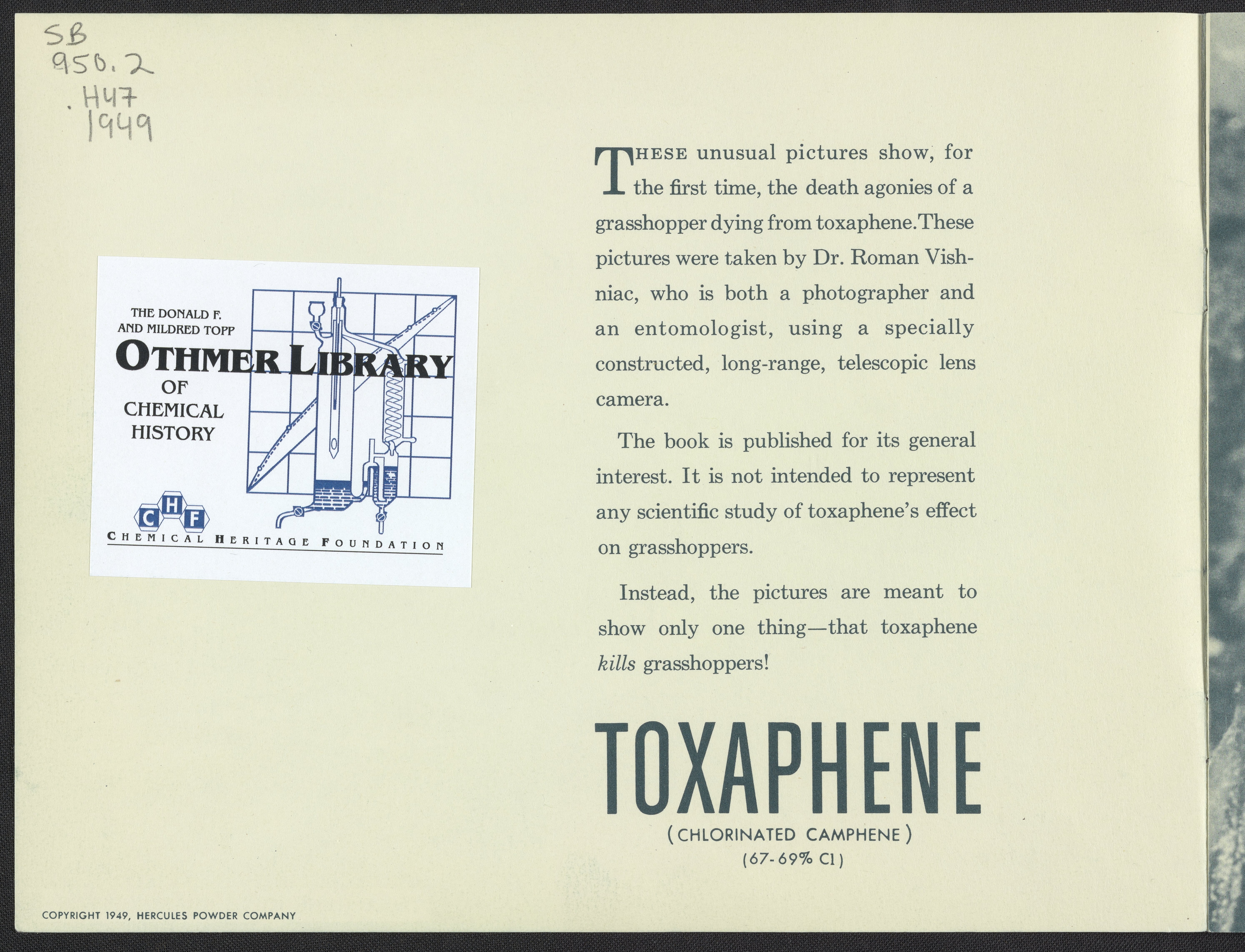 Hercules Powder Company. “Toxaphene Kills Grasshoppers: The Camera Shows It's as Simple as A.B.C.” Wilmington, Delaware, 1949. https://digital.sciencehistory.org/works/j6731502v.
