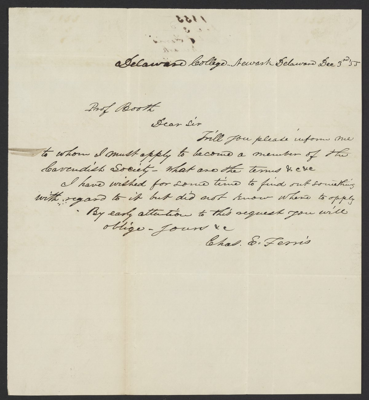 Letter from Charles Ferris to James Curtis Booth, December 3, 1855