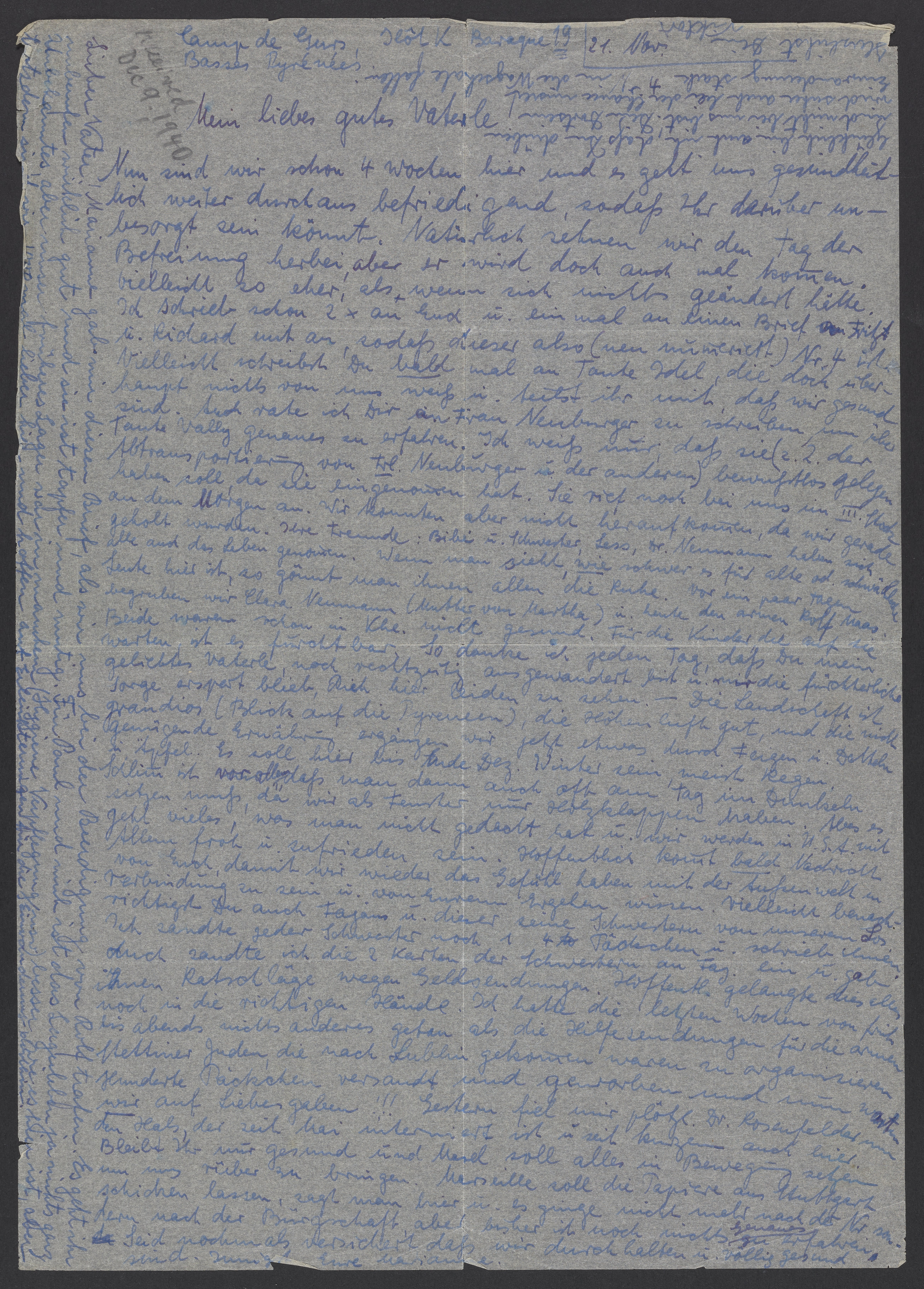 Letter from Marianne Homburger to Georg Bredig, November 21, 1940