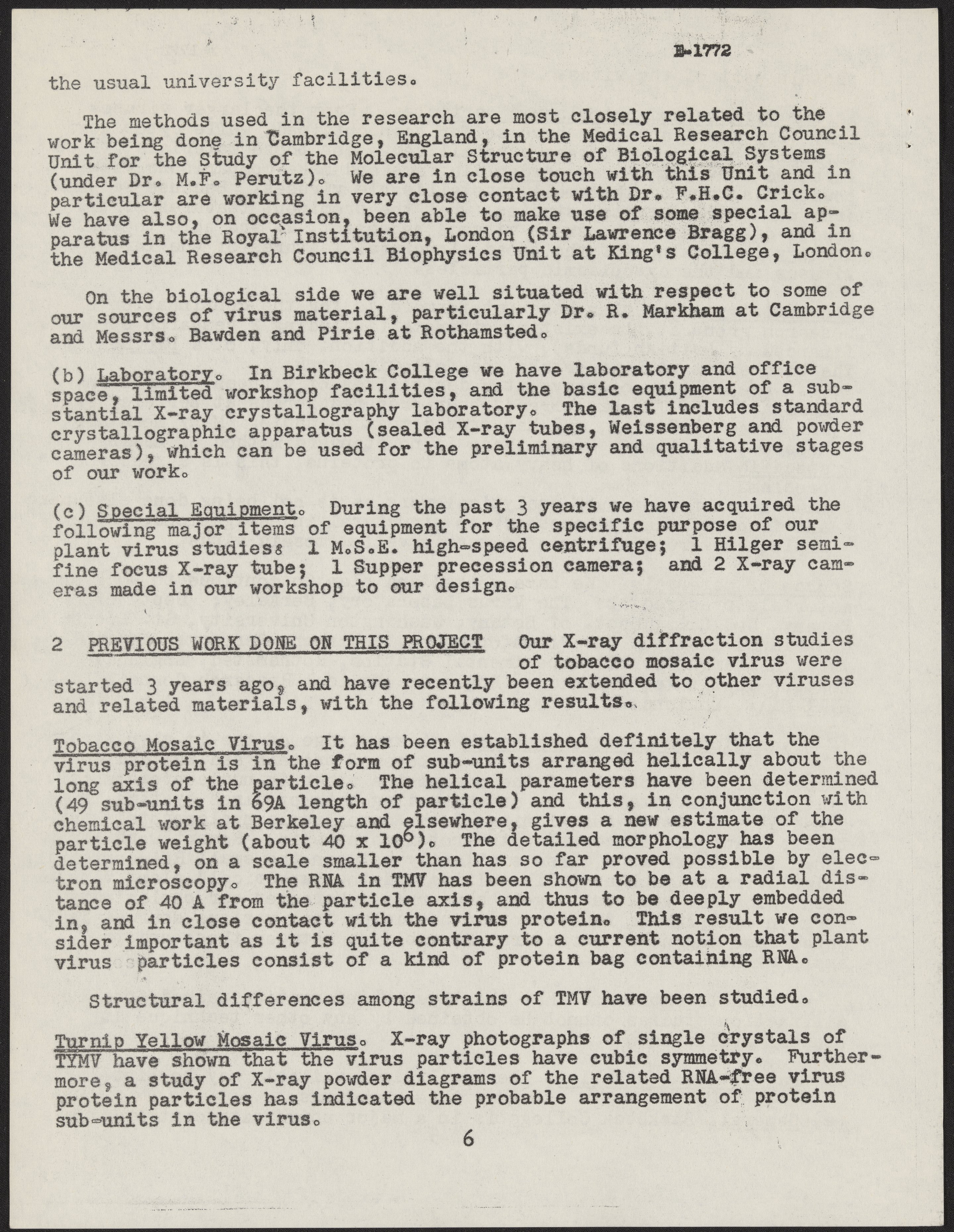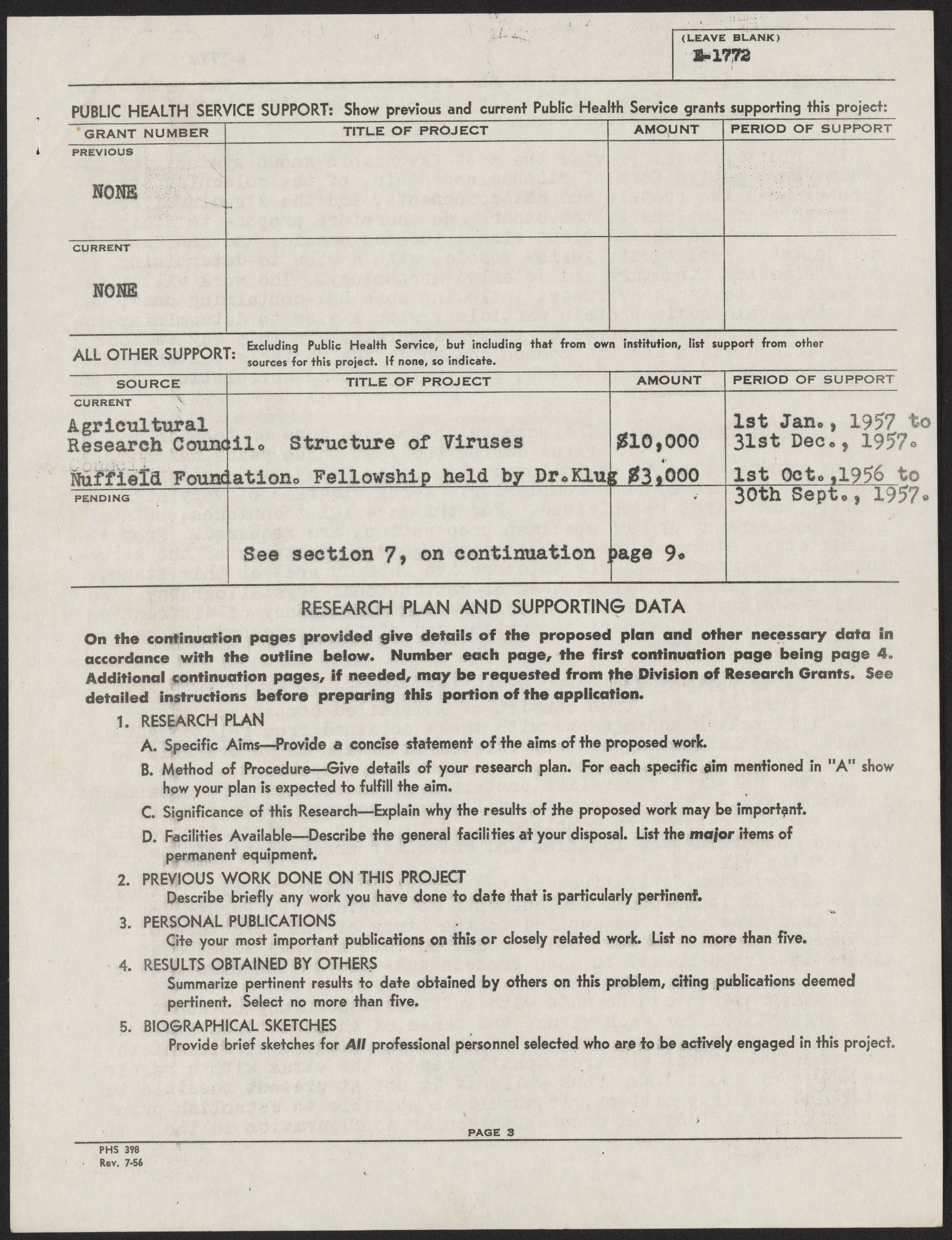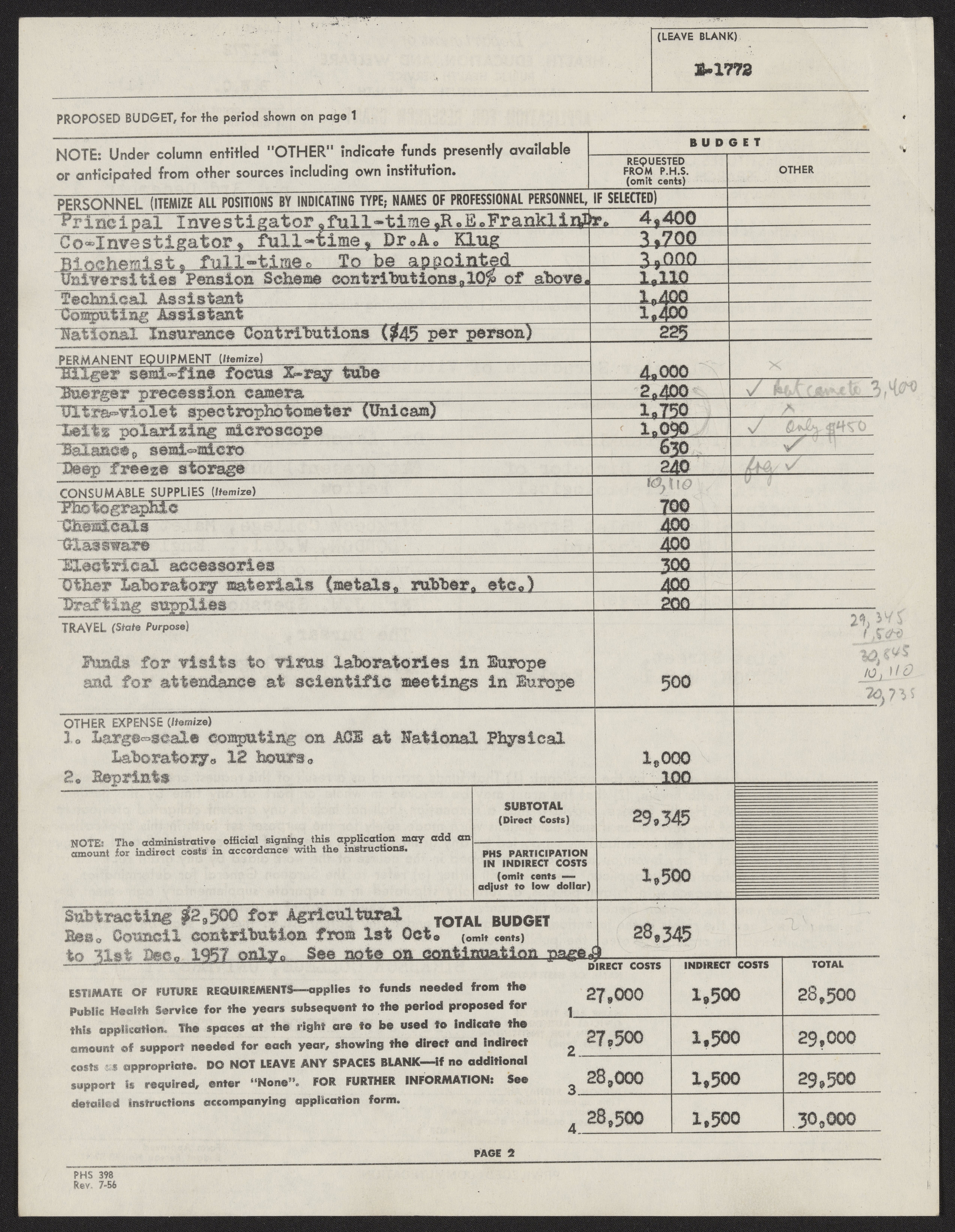 Franklin, Rosalind. “Grant Application to the National Institutes of Health,” 1956–1957. History of Molecular Biology Collection, Box 10, Folder 6. Science History Institute. Philadelphia. https://digital.sciencehistory.org/works/jl32vxp.