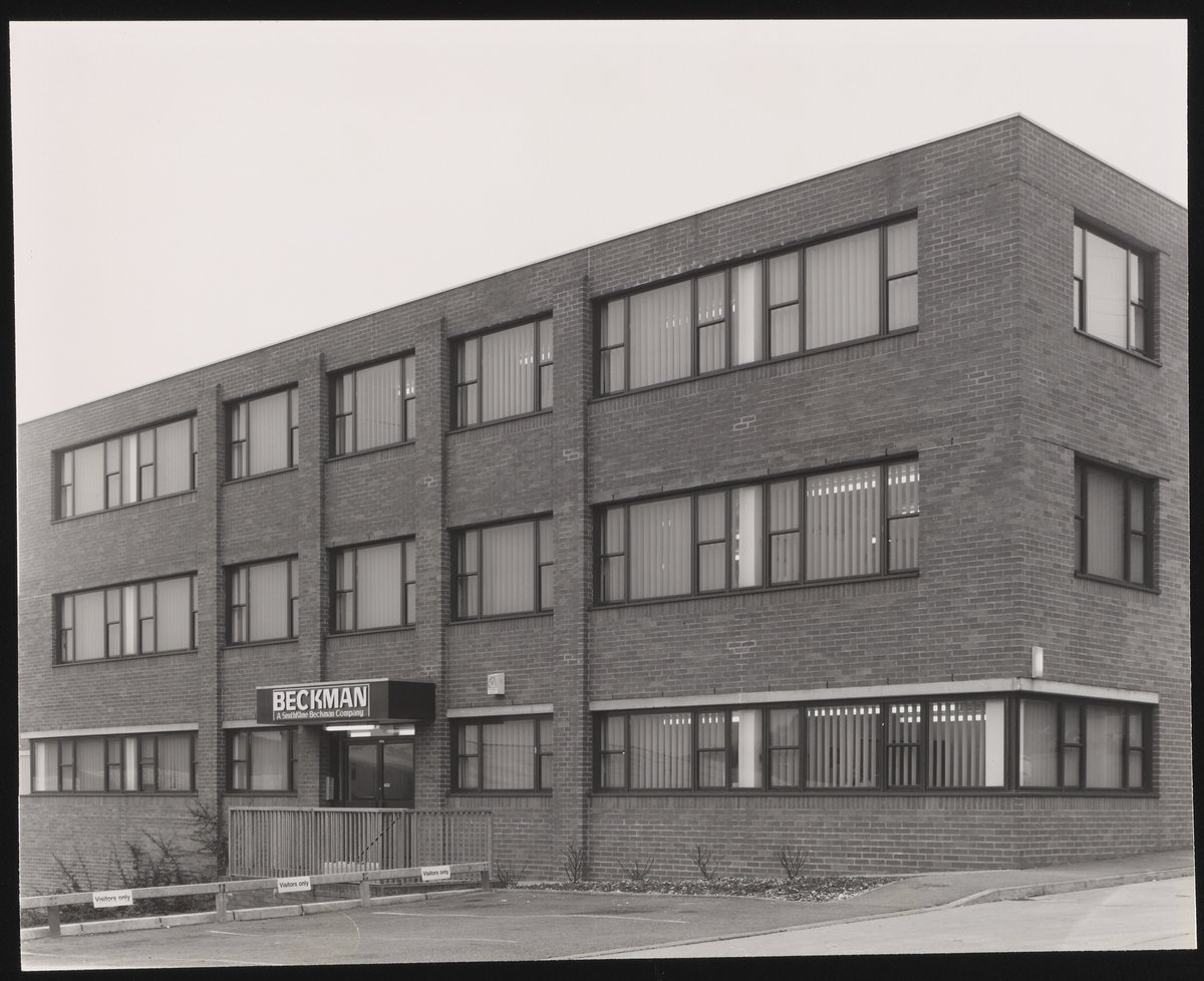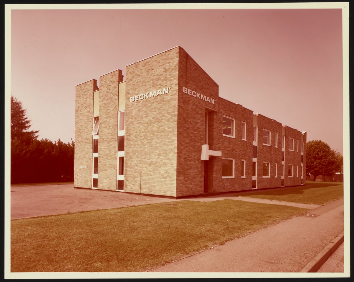 “Beckman Facilities, England,” circa 1985. Beckman Historical Collection, Box 57, Folder 17. Science History Institute. Philadelphia. https://digital.sciencehistory.org/works/jm214p530.