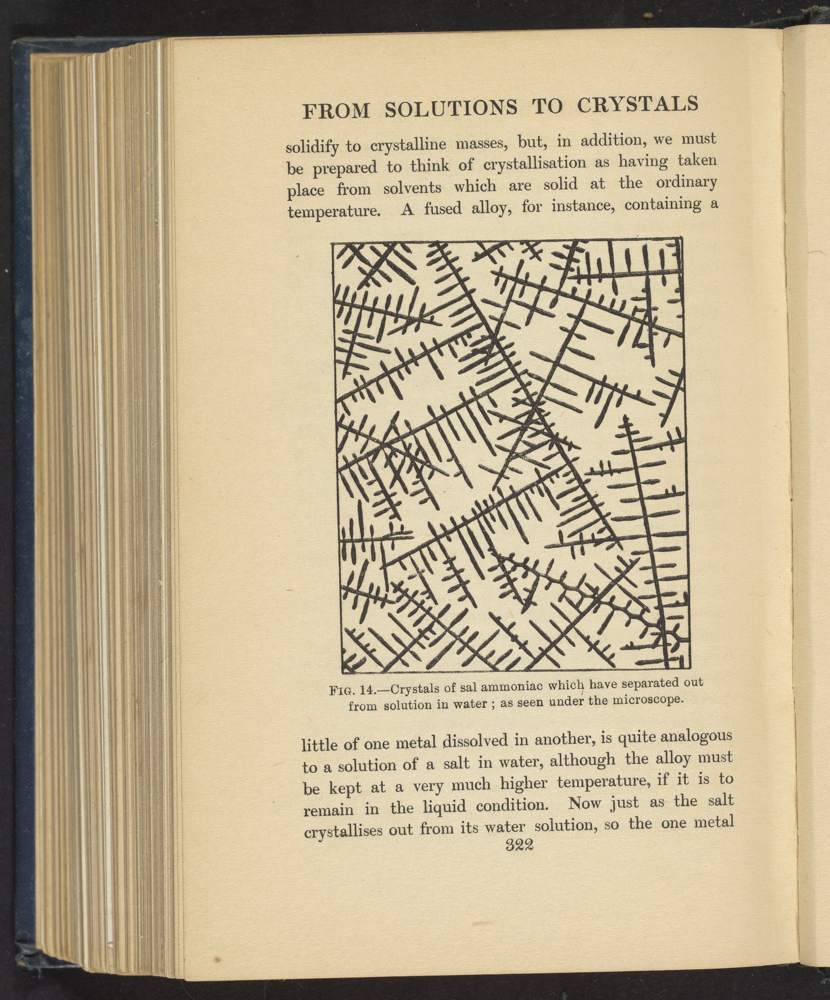 Figure illustrates salammoniac under magnification after being dissolved in water, causing the crystals to separate out from the solution.