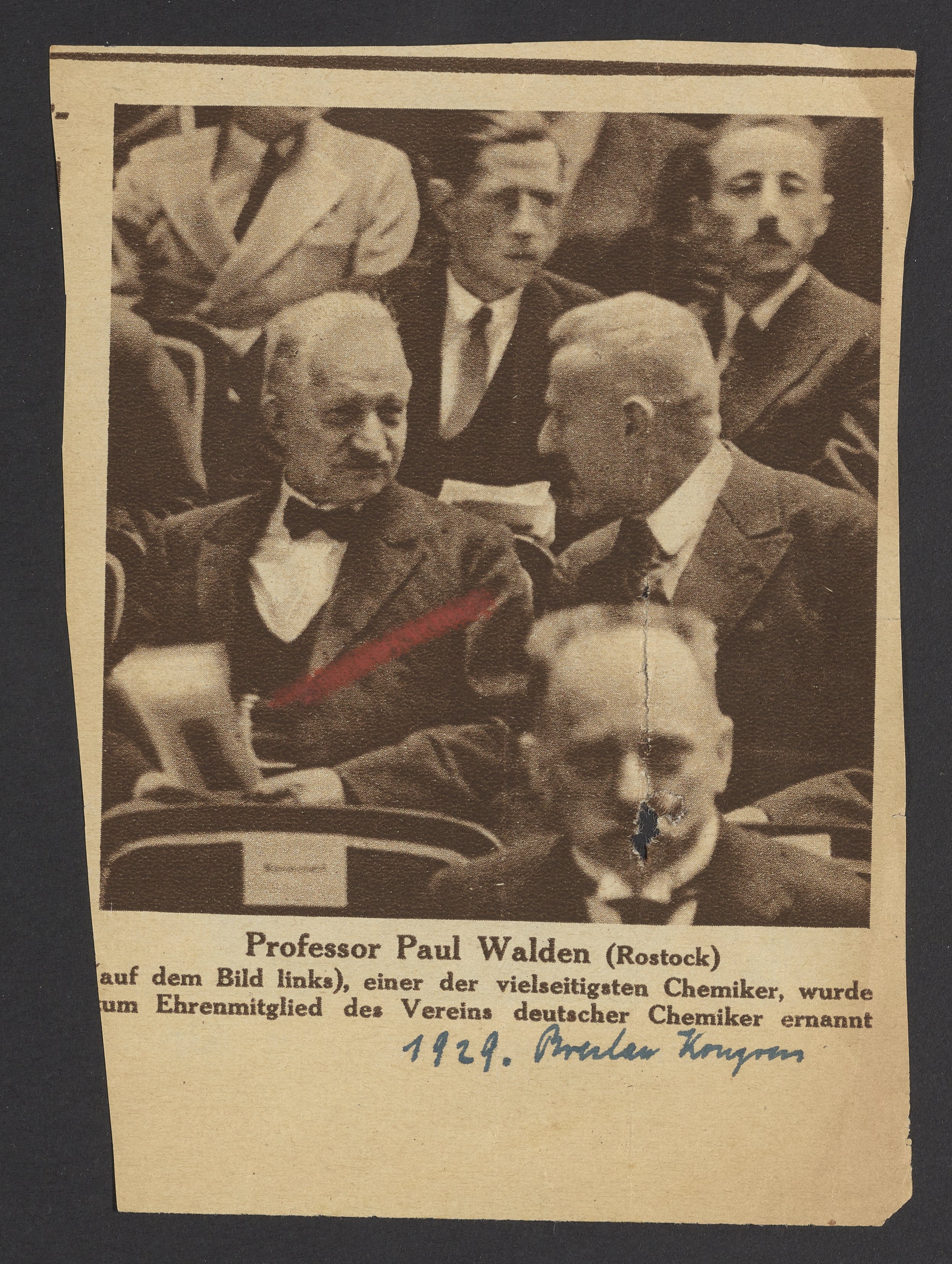 “Printed Photograph of Professor Paul Walden,” 1929. Papers of Georg and Max Bredig, Box 10, Folder 35. Science History Institute. Philadelphia. https://digital.sciencehistory.org/works/jm40y98.