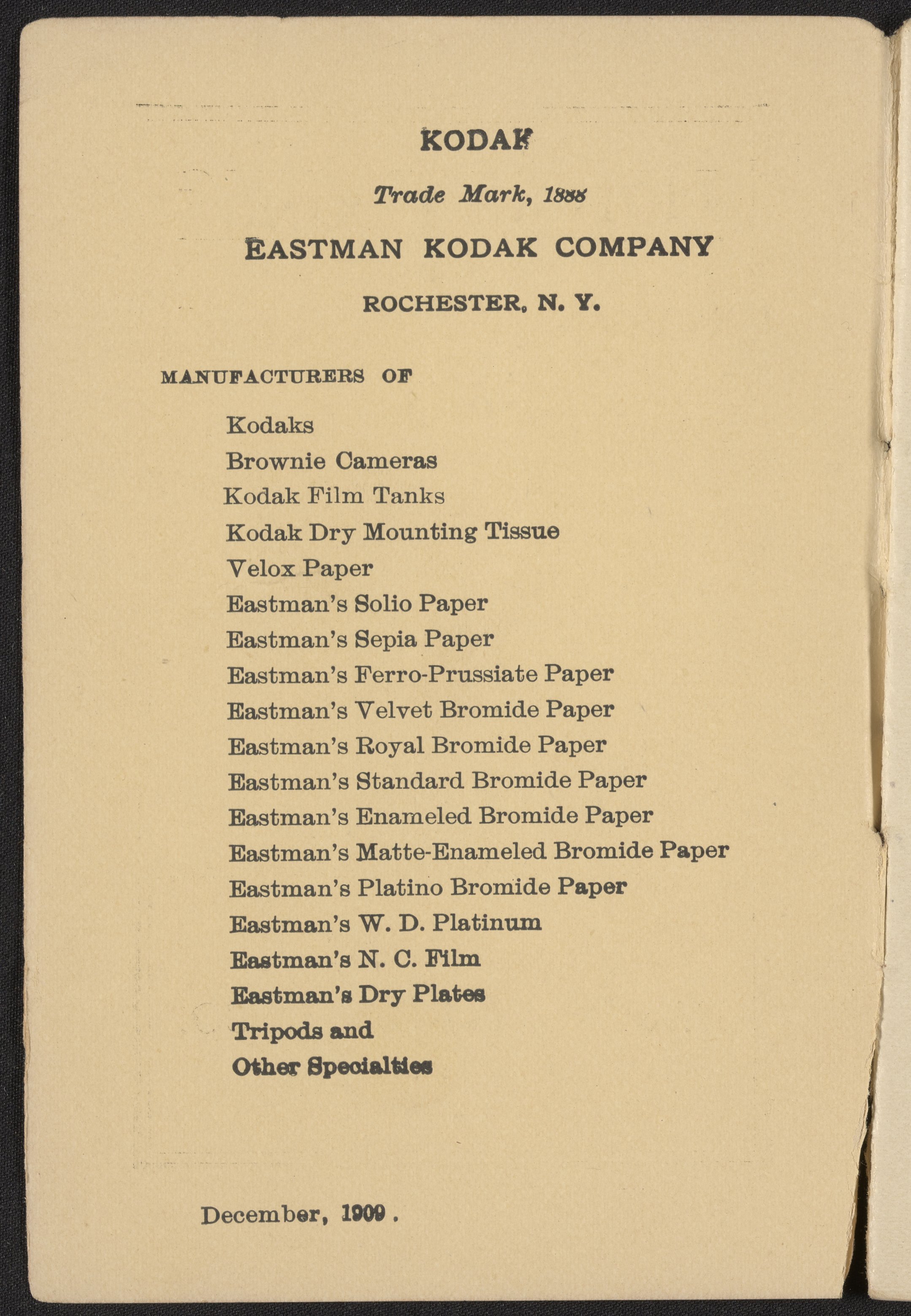 Eastman Kodak Company. “Picture Taking with the Brownie Camera No. 3,” December 1909. Eastman Kodak Pamphlet Collection, Folder 1. Science History Institute. Philadelphia. https://digital.sciencehistory.org/works/jphr6hj.