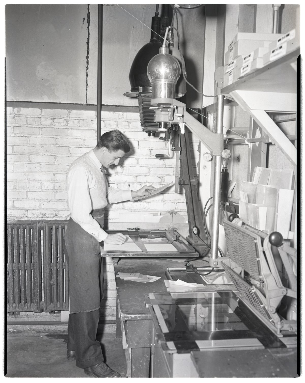 Ford Bowers printing photographs in Dow Photographic Laboratory