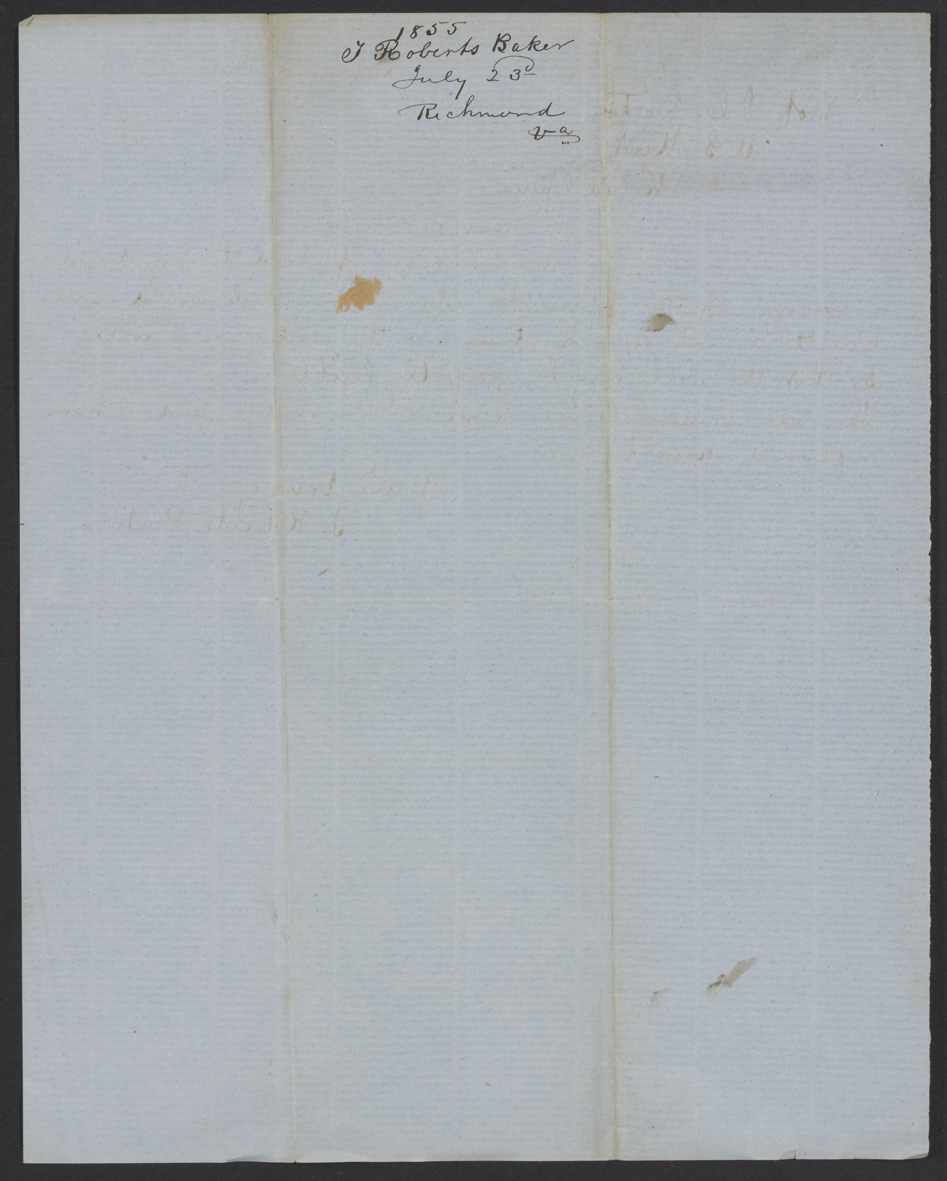 Letter from T. Roberts Baker to James Curtis Booth, July 23, 1855