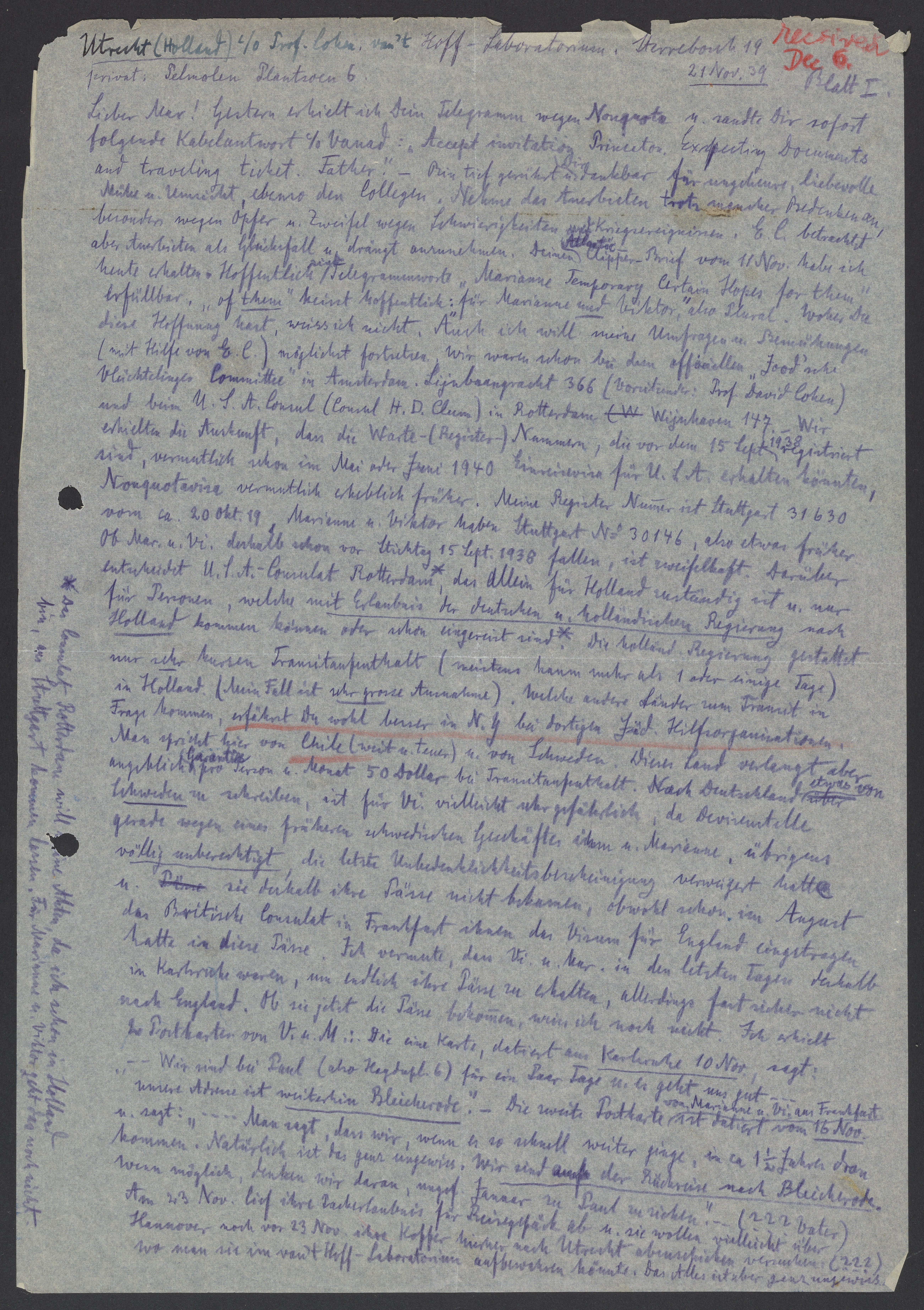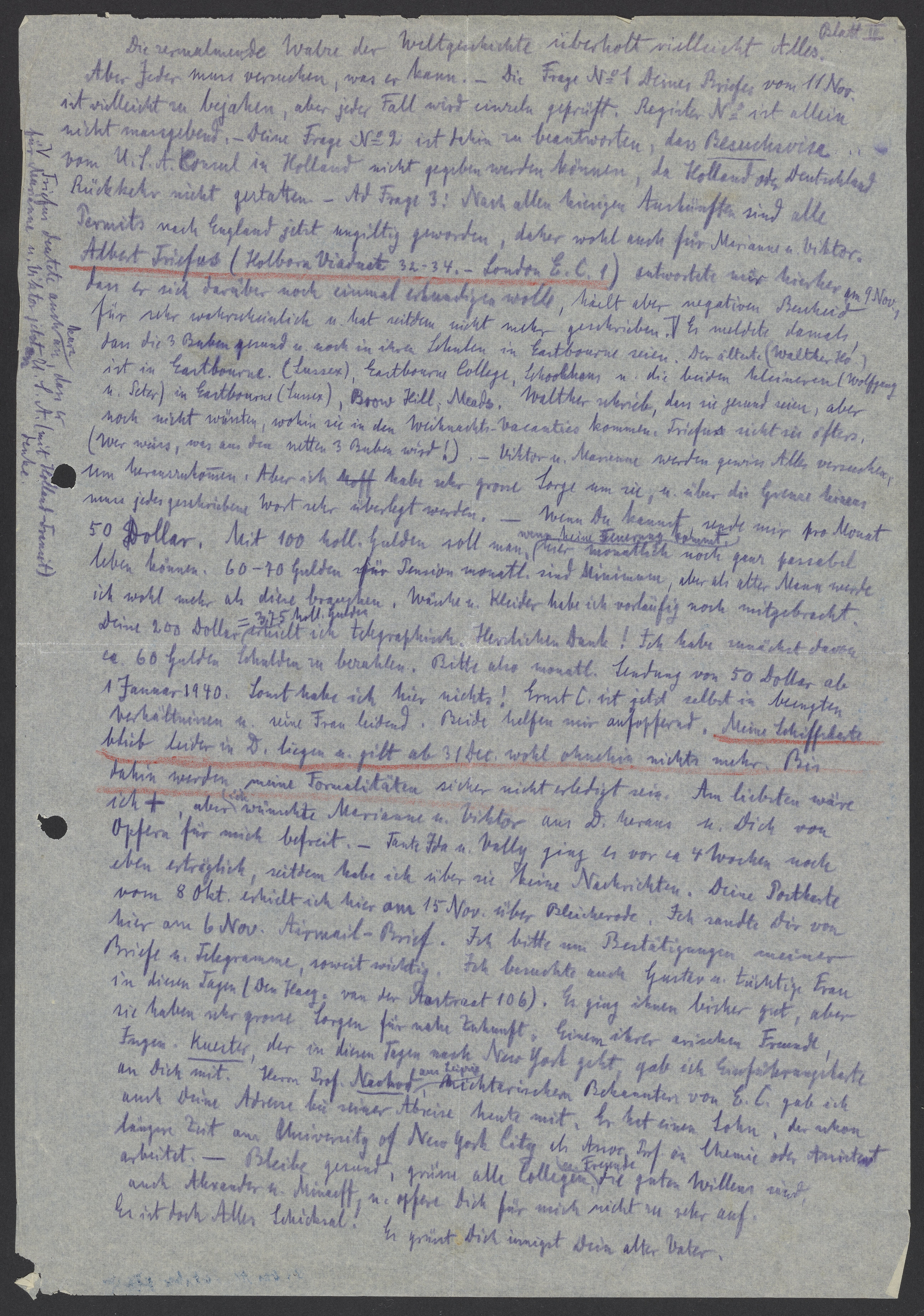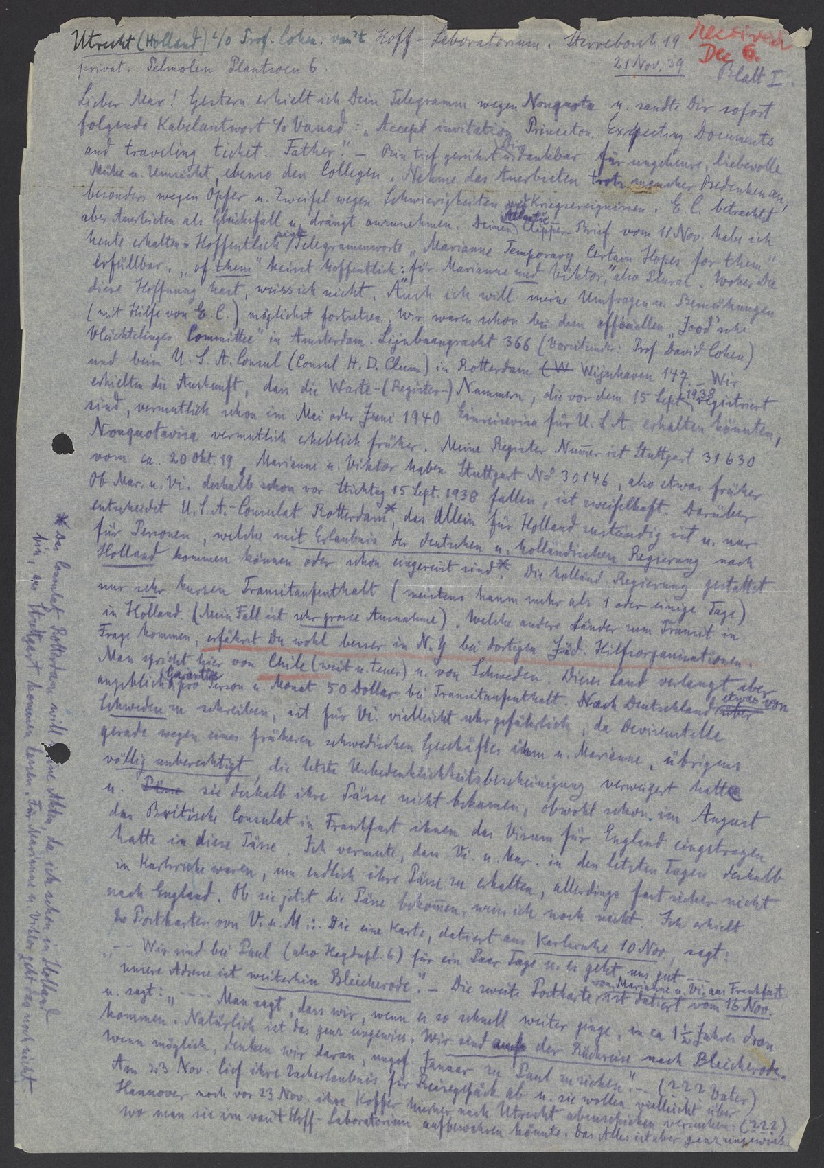 Letter from Georg Bredig to Max Bredig, November 21, 1939