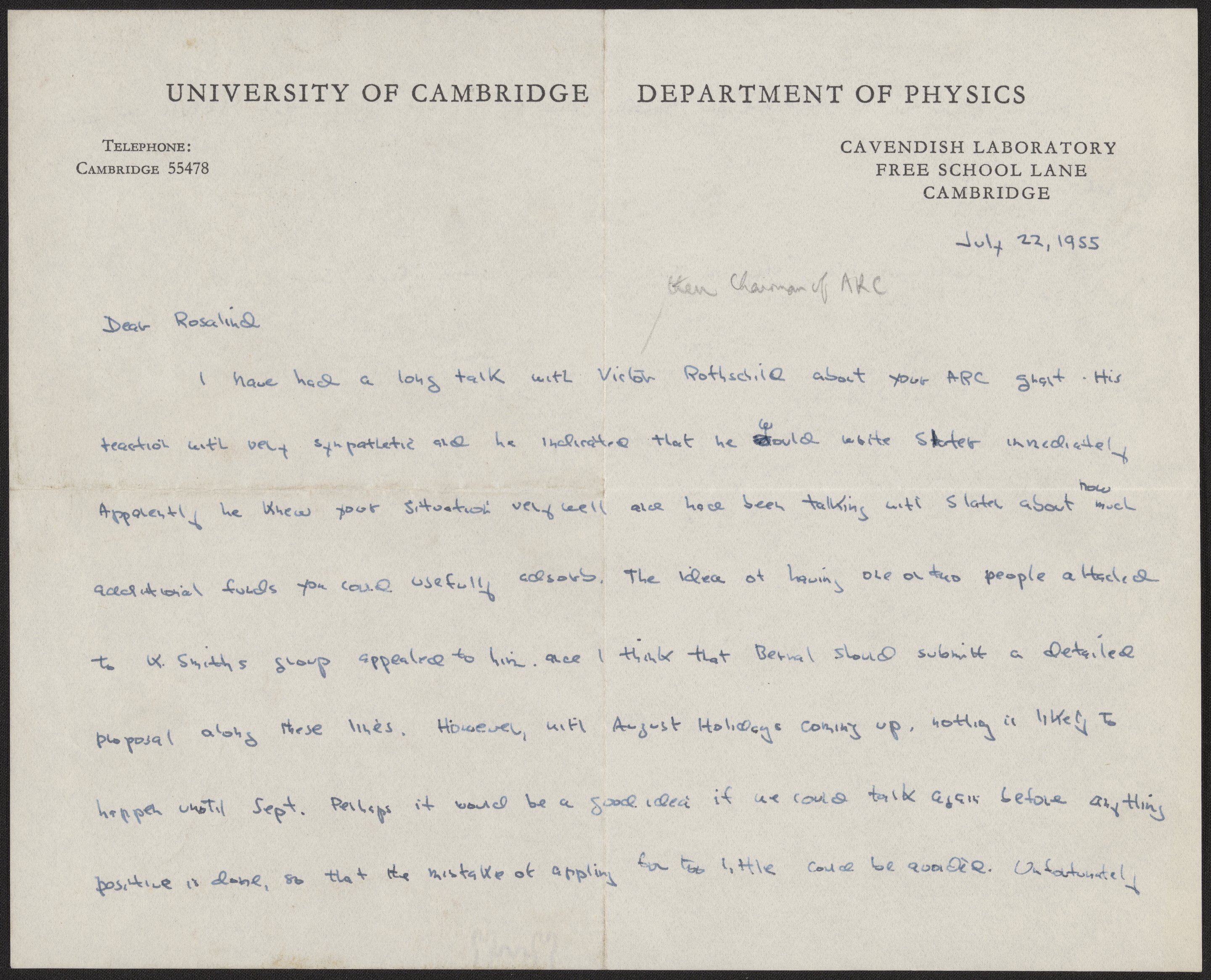 Watson, James D. “Letter from James D. Watson to Rosalind Franklin, July 22, 1955,” July 22, 1955. History of Molecular Biology Collection, Box 7, Folder 37. Science History Institute. Philadelphia. https://digital.sciencehistory.org/works/jvem98t.