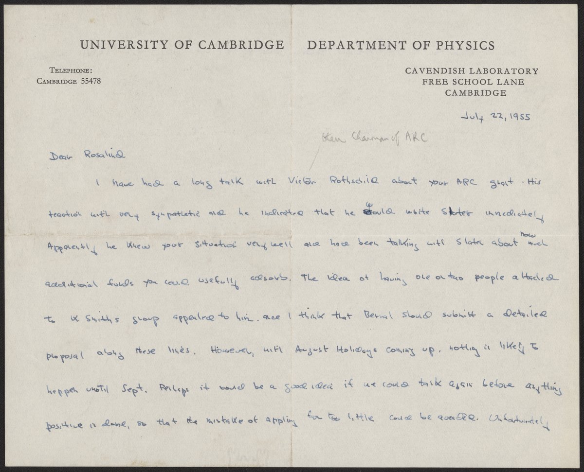 Letter from James D. Watson to Rosalind Franklin, July 22, 1955
