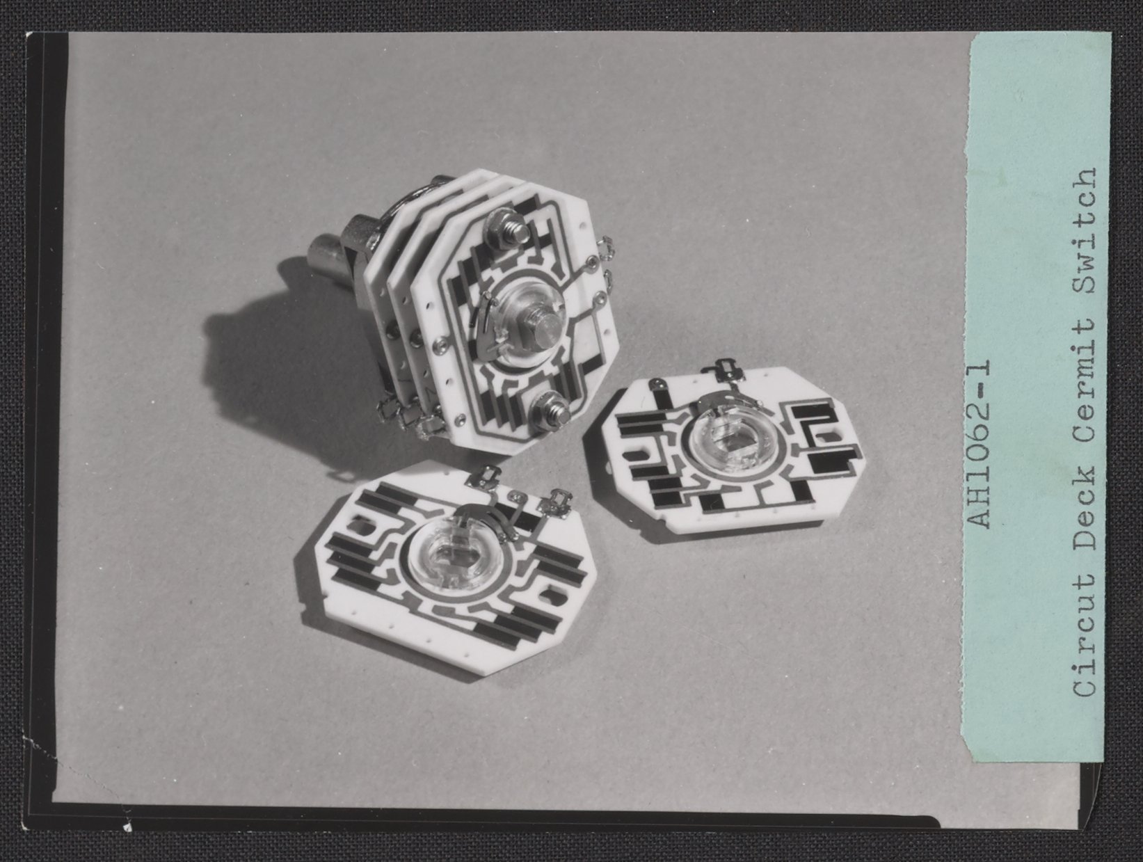 Armstrong & Hess. “Circuit Deck of a Beckman Cermet Switch,” 1950–1969. Beckman Historical Collection, Box 85. Science History Institute. Philadelphia. https://digital.sciencehistory.org/works/jw827c041.