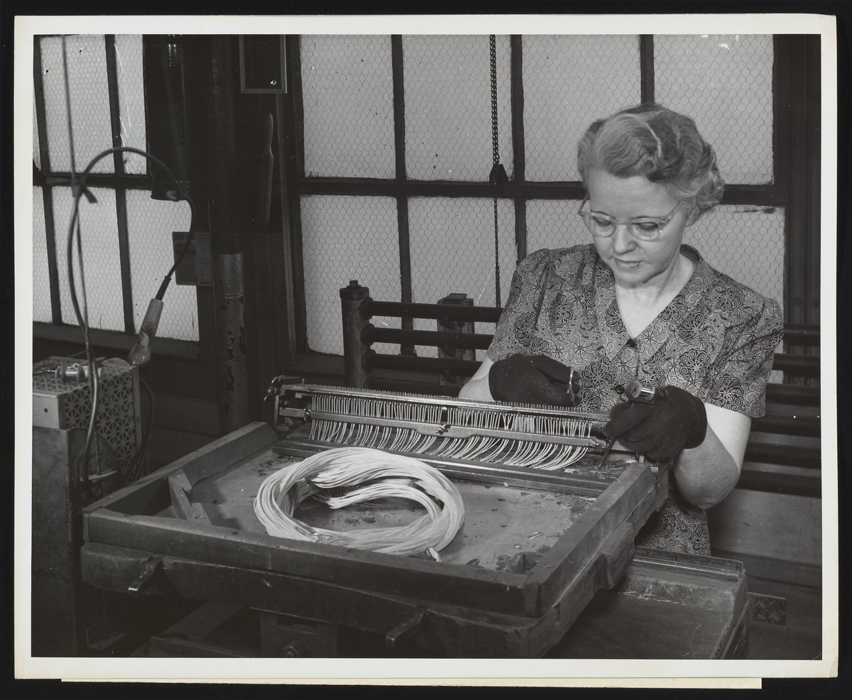 Bertha Warren trimming platinum wires at Hercules Port Ewen plant