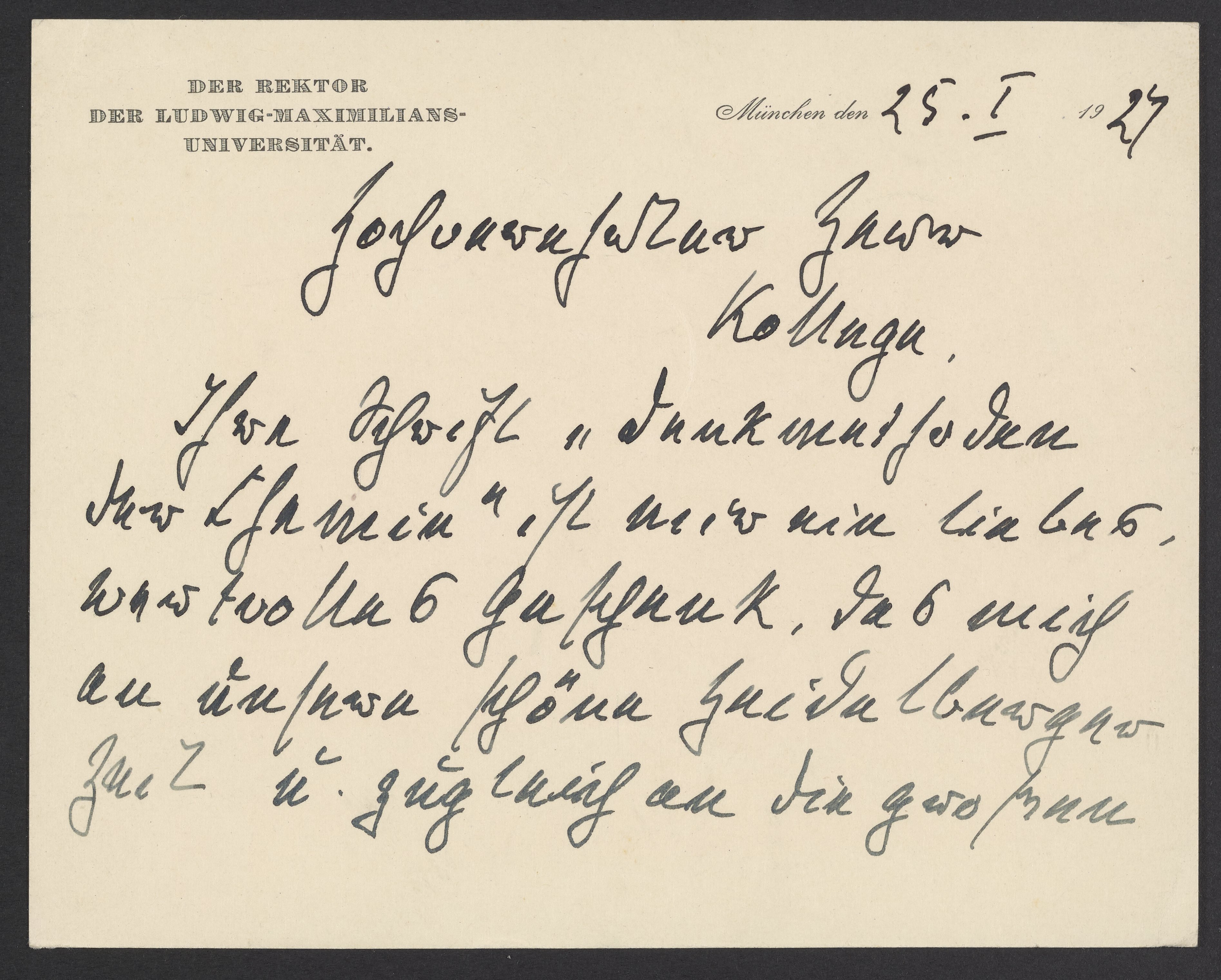 Letter from Karl Vossler to Georg Bredig, January 1927